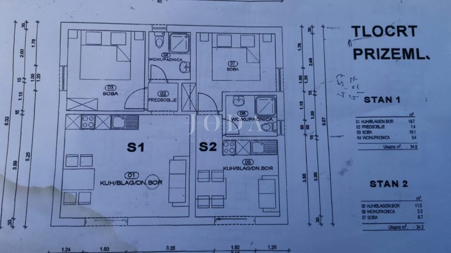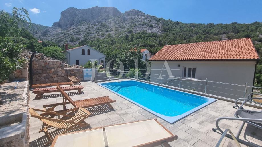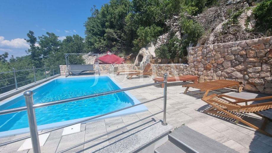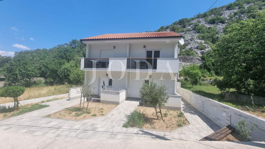 Samostojeća kuća sa 4 apartmana na 200 metara od prekrasne šljunčane plaže. Svi stanovi imaju zasebne ulaze i terrase dok se iza kuće na povišenom dijelu nalazi bazen sa sunčalištem i grillom. Potpuno namještena i novouređena kuća u funkciji turizma. Pogled na more sa kata i sa okućnice.