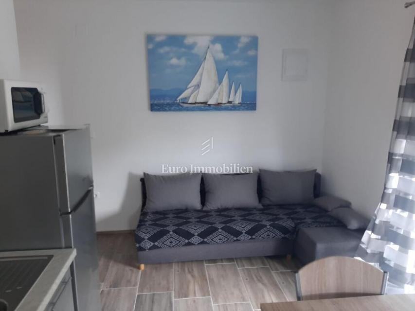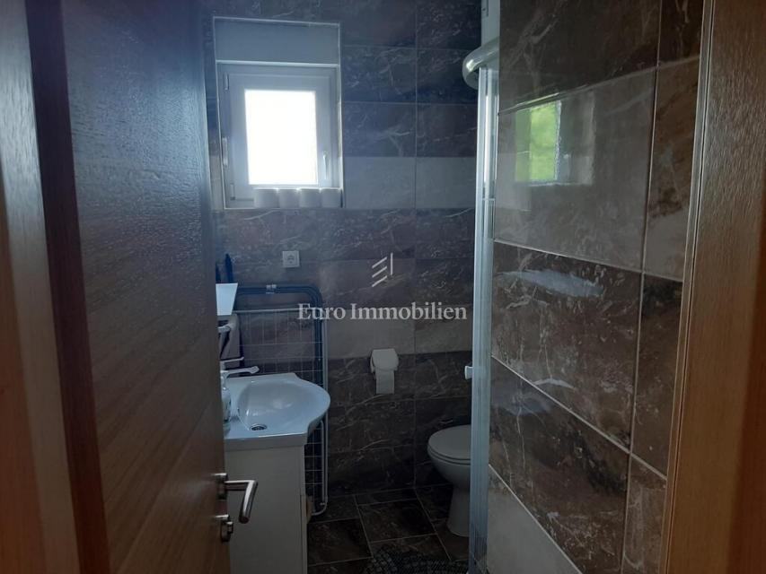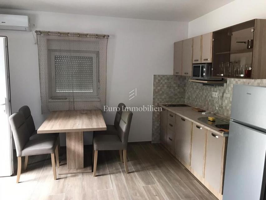 Prodaje se samostojeća kuća s 4 apartmana, samo 200 m udaljena od prekrasne šljunčane plaže. Svi stanovi imaju zasebne ulaze i terase dok se iza kuće na povišenom dijelu nalazi bazen sa sunčalištem i roštiljem. Potpuno namještena i novouređena kuća u funkciji turizma. Pogled na more s kata i s okućnice. Parkirna mjesta za veći broj automobila ispred kuće.