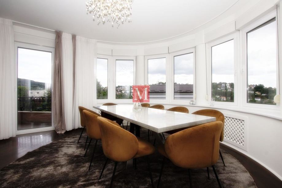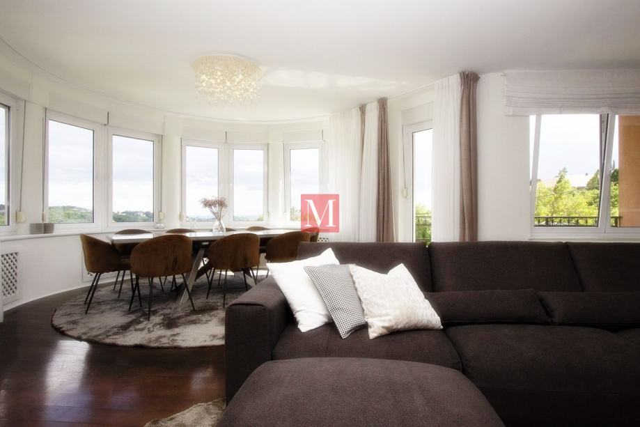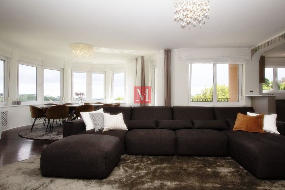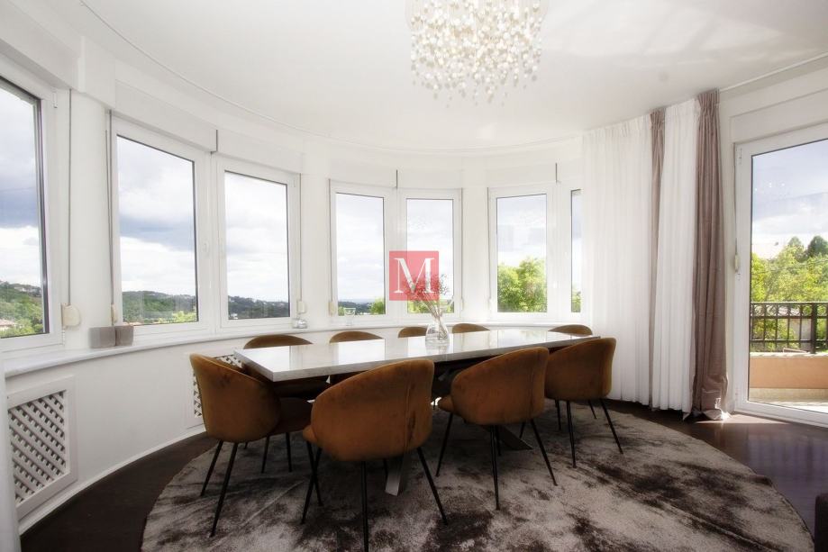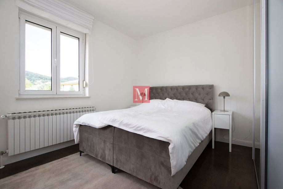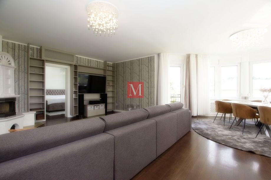 Sastoji se od prostranog ulaznog hodnika, kuhinje, dnevnog boravka i blagovaonice iz koje se izlazi na dva balkona sa prekrasnim pogledom na brda i zelenilo, 3 spavaće sobe, 1 radne sobe, 2 kupaonice i gostinjskog WC-a.