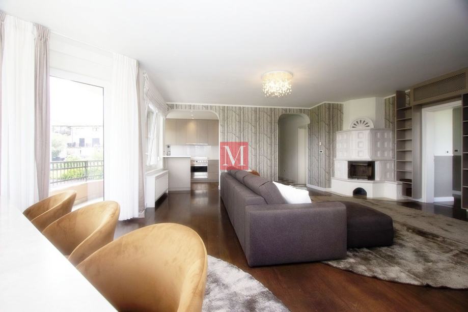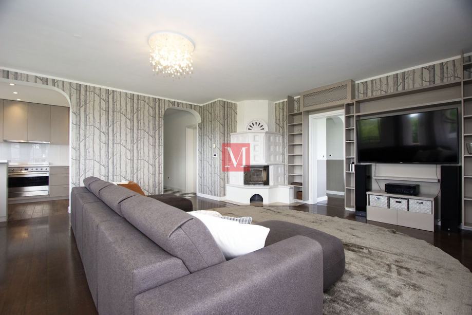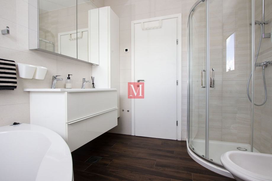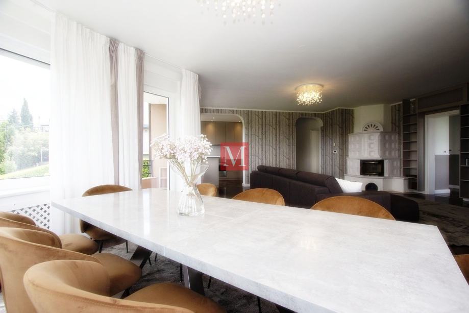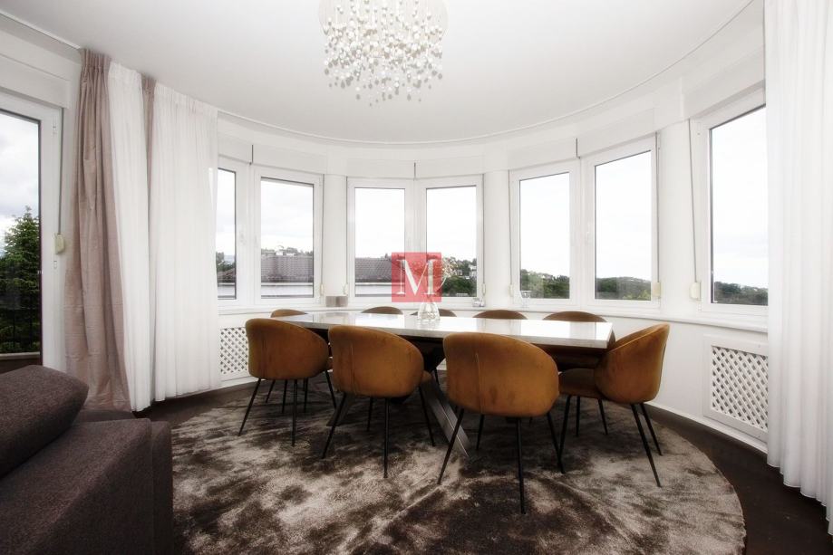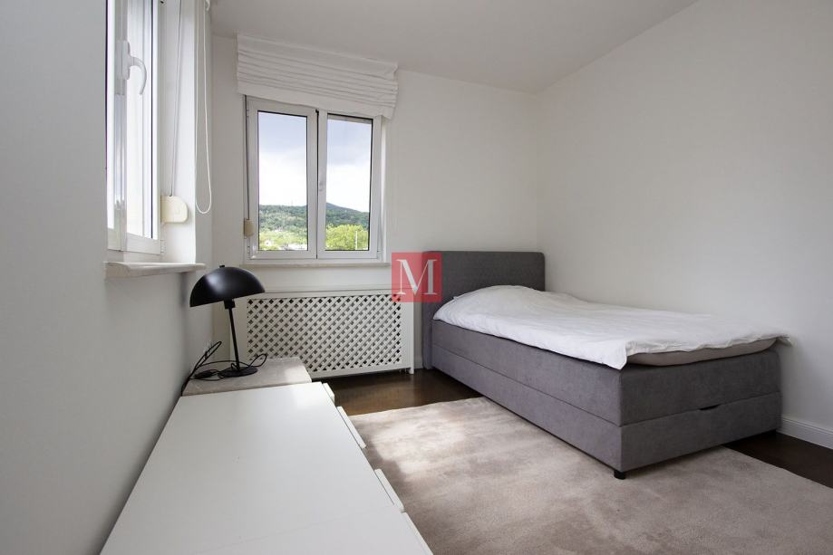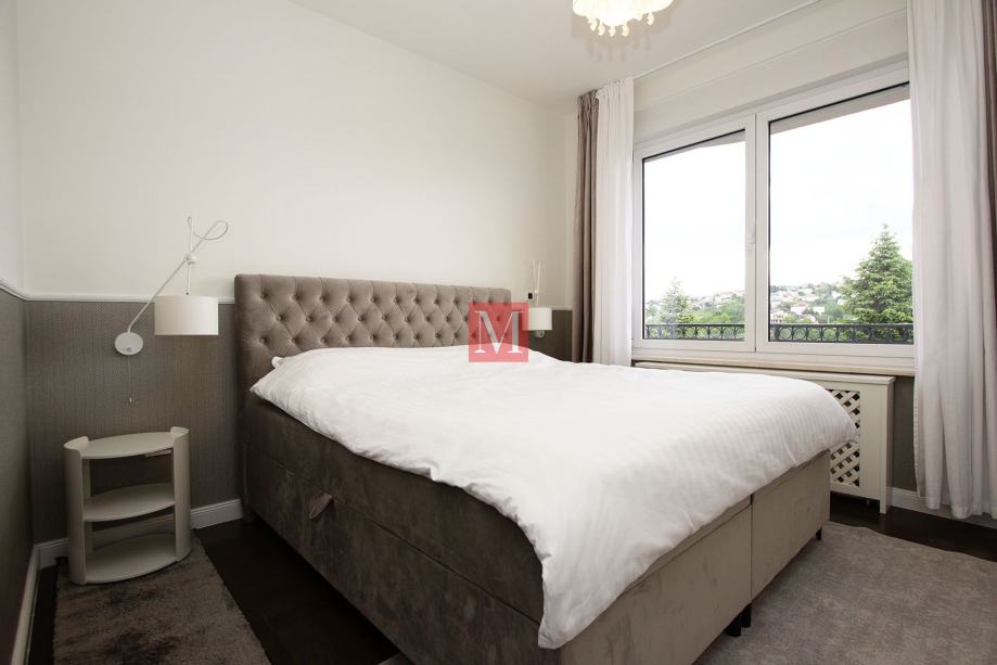 Sastoji se od prostranog ulaznog hodnika, kuhinje, dnevnog boravka i blagovaonice iz koje se izlazi na dva balkona sa prekrasnim pogledom na brda i zelenilo, 3 spavaće sobe, 1 radne sobe, 2 kupaonice i gostinjskog WC-a.