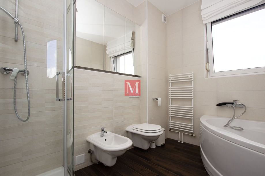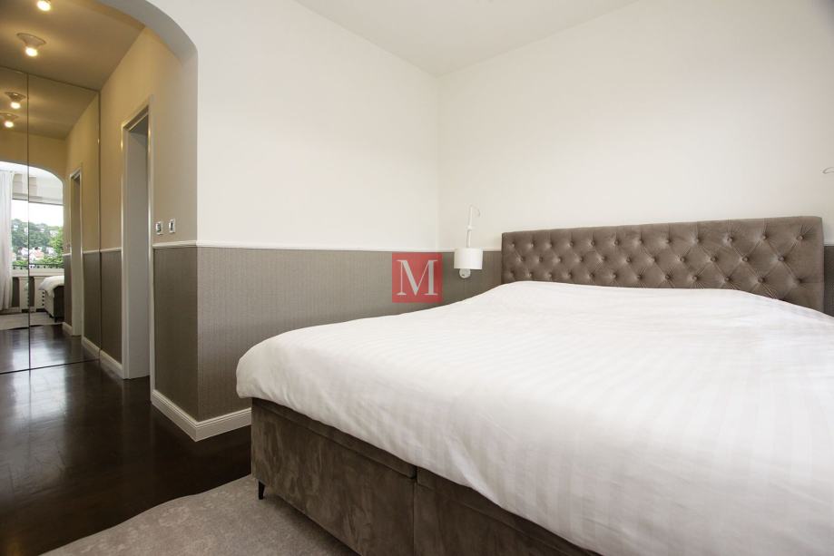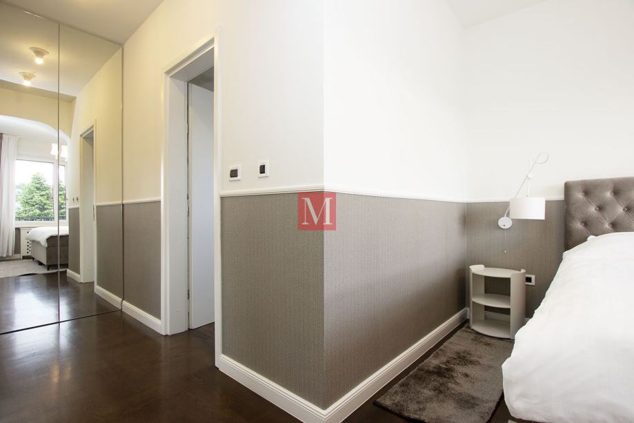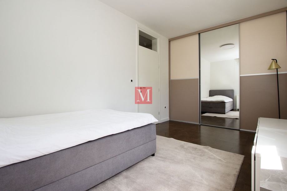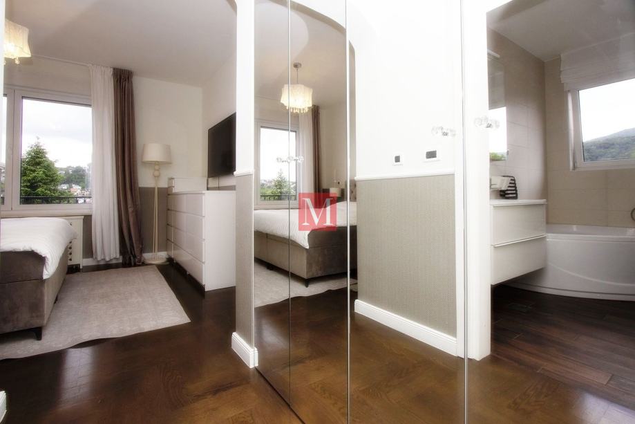 Zgrada je građena 2011. godine. Stan je potpuno opremljen vrhunskim namještajem, ugradbenim ormarima, svim potrebnim kućanskim aparatima, ima klima jedinicu, kamin, protuprovalna vrata, vrhunsku unutarnju i vanjsku stolariju te podno grijanje u kupaonama. U stanu je Internet-optika, orijentacija na sve strane svijeta, pvc stolarija, 2.75 m visina stropa, video portafon..