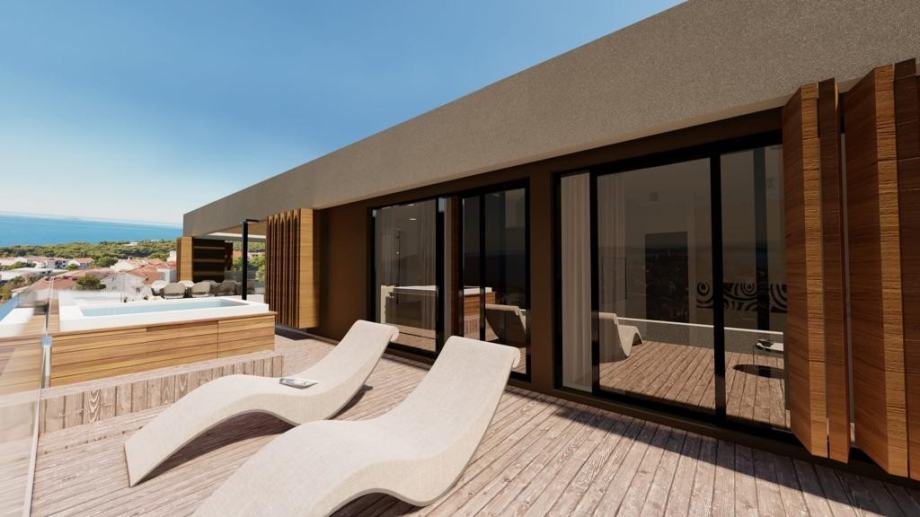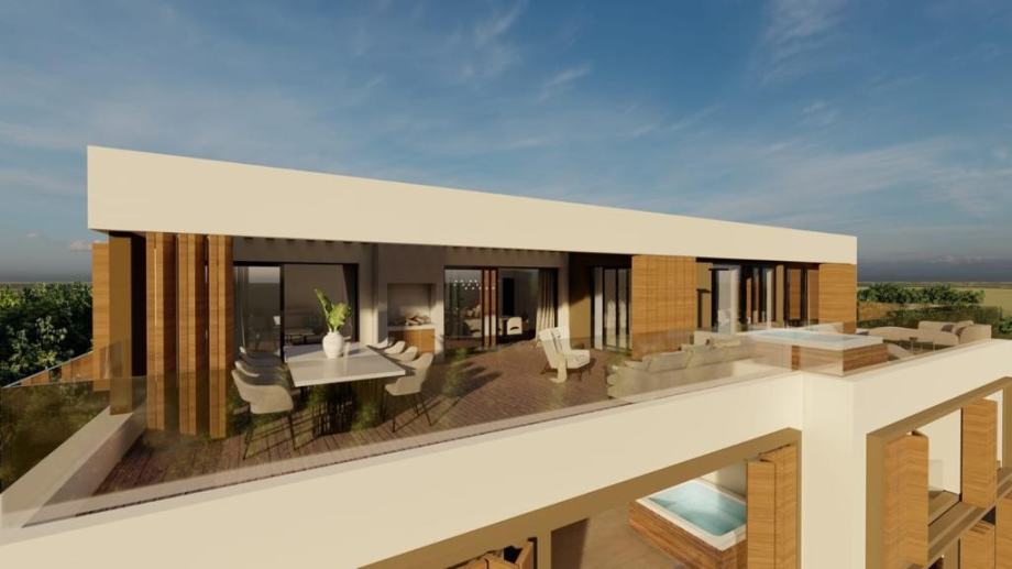 Stanovi u prizemlju imaju i vanjski bazen, dok stanovi na katovima imaju privatne hidromasažne kade - jacuzzi na terasama.