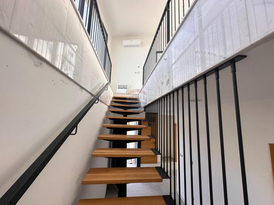Duplex je izgrađen izrazito atraktivno i jedinstveno. Upadljiv i zanimljiv dizajn izvana i iznutra izdvaja ovaj duplex. Izgrađen na mirnoj lokaciji.