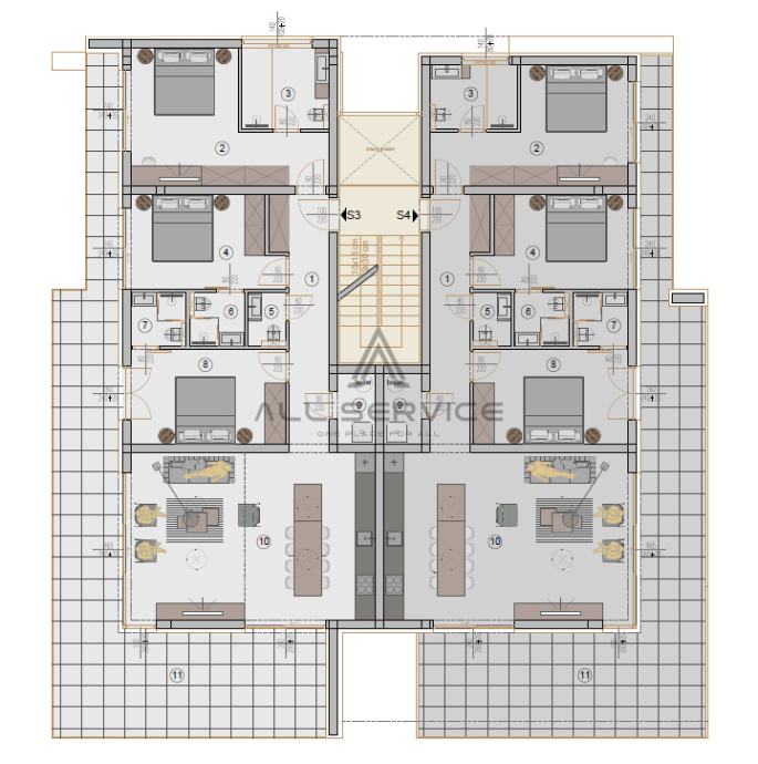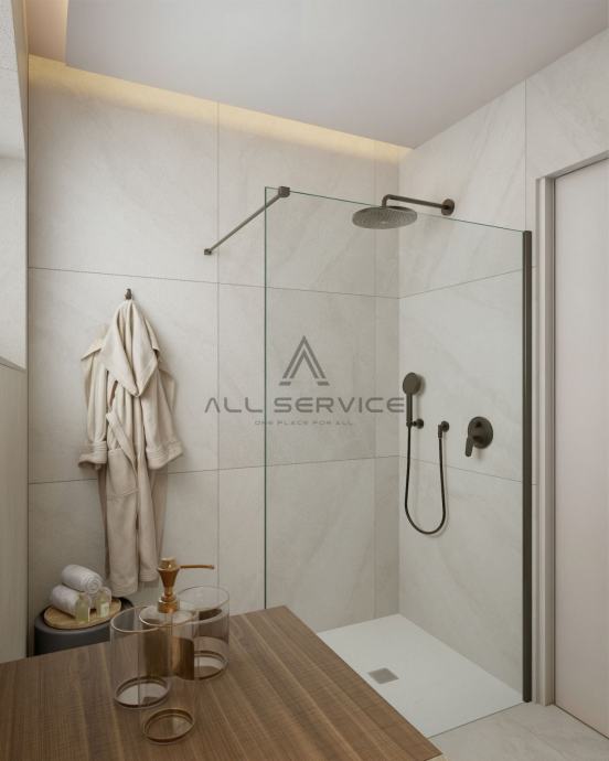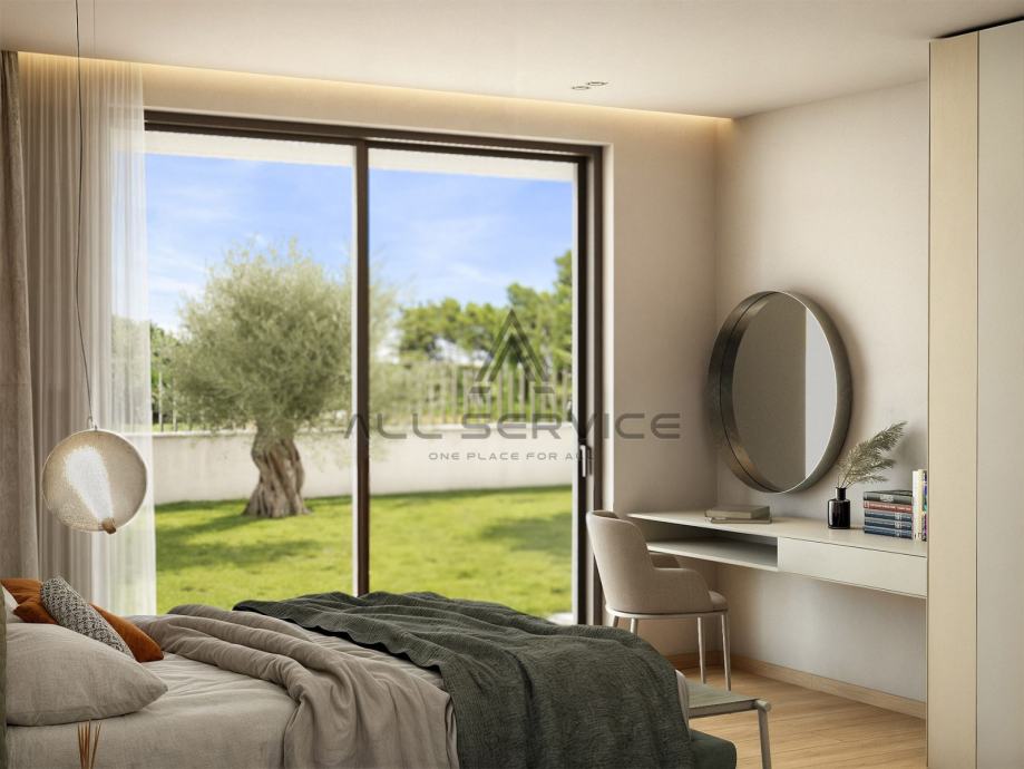 Ekskluzivna novogradnja u jednoj od najtraženijih destinacija na Jadranu. Na atraktivnoj lokaciji u Rovinju, udaljenoj svega 1.500 metara od prekrasnih plaža, smještena je moderna i impresivna stambena zgrada s ukupno četiri prostrana stana. Dva stana u prizemlju raspolažu vlastitim bazenima i velikim privatnim vrtovima, dok stanovi na katu imaju i privatne krovne terase s panoramskim pogledom.