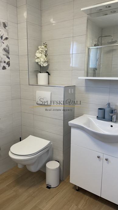 Iznajmljuje se dugoročno (minimalno godinu dana) prekrasan dvosoban stan od 58m2 u Kaštel Sućurcu sa balkonom, pogledom na more i osiguranim vanjskim parkirnim mjestom.