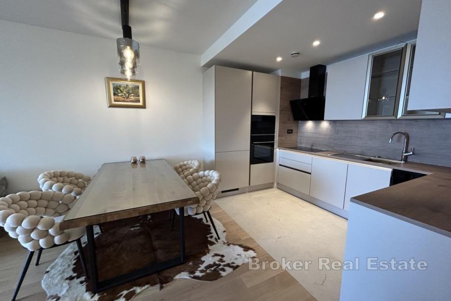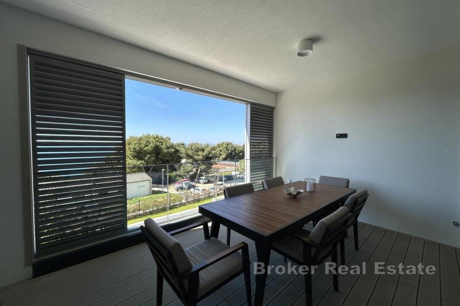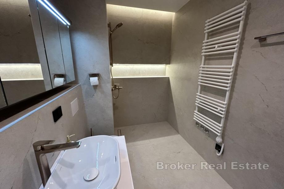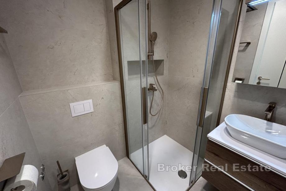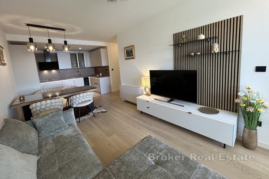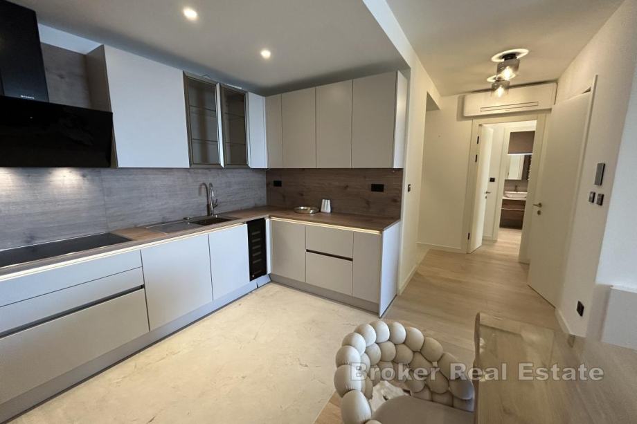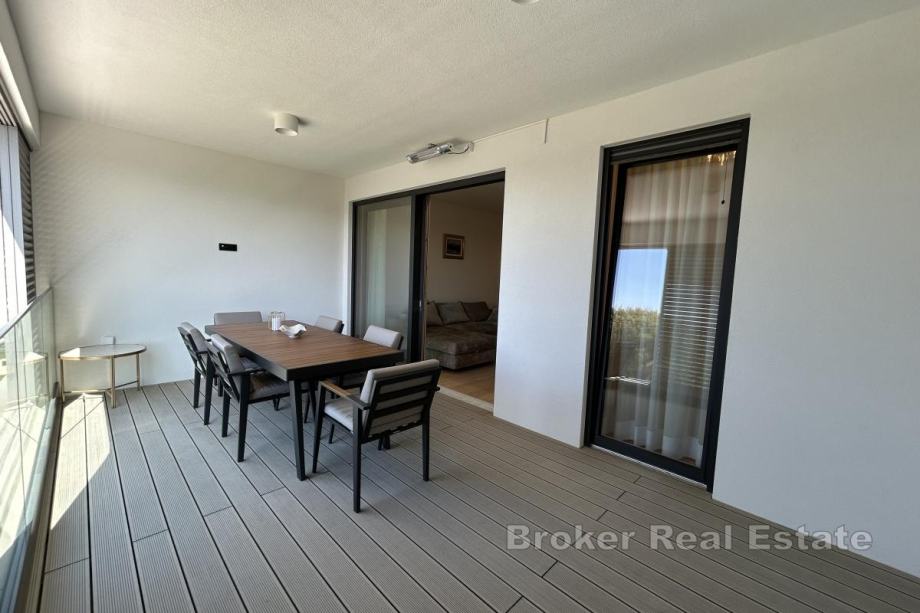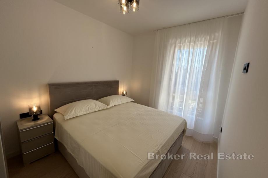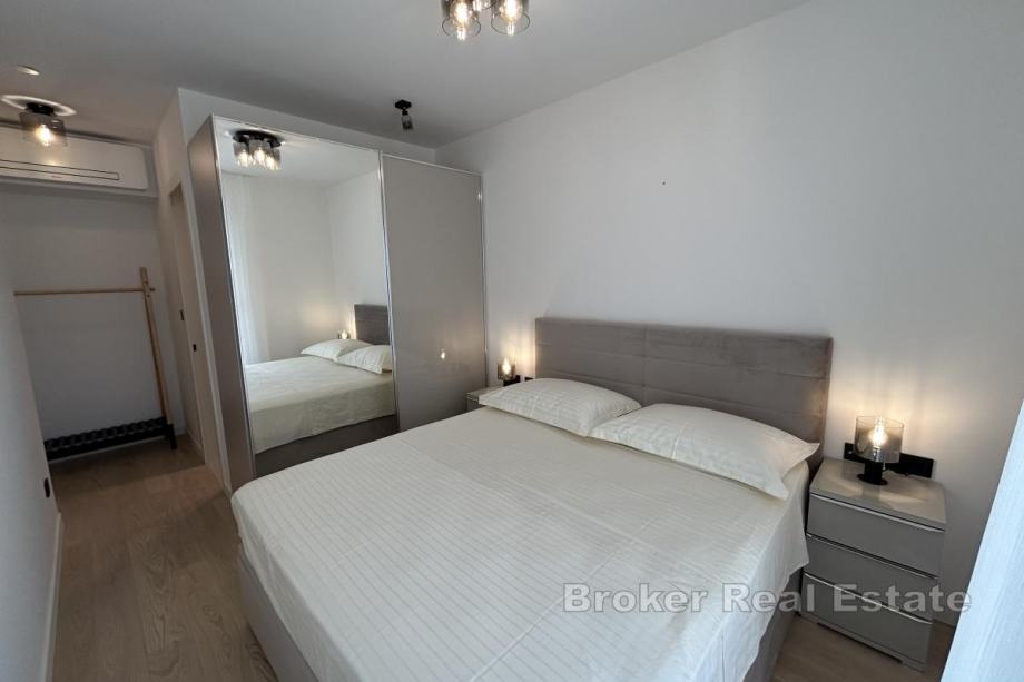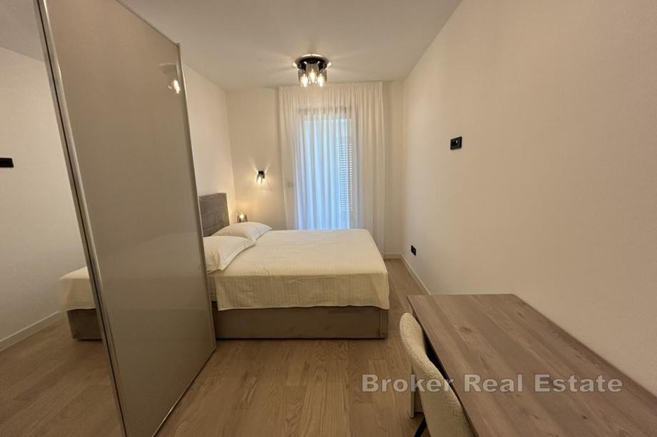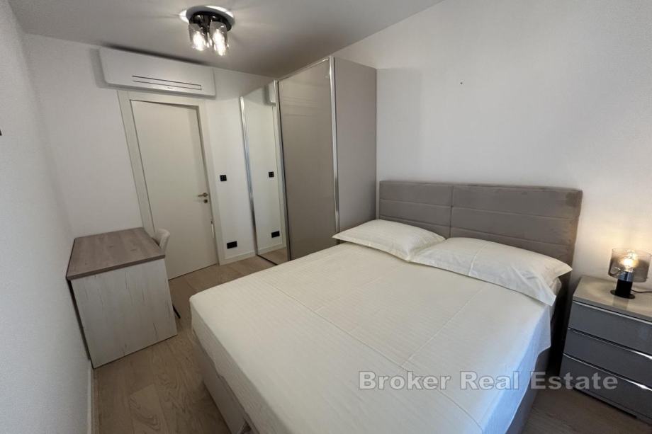 Dugoročno se iznajmljuje na Duilovu potpuno namješten stan na 1. katu moderne, stambene zgrade s recepcijom i zaštitarom. Stan je površine 82 m2, orijentacije jug, a sastoji se od 2 spavaće sobe koje su klimatizirane, od kojih su obje s bračnim krevetima. Jedna spavaća soba ima vlastitu kupaonicu i dok se u drugoj nalazi radni stol te izlazak na loggiu. Stan je koncipiran: kuhinju s blagovaonicom te prostrani dnevni boravak iz kojeg se izlazi na loggiu s koje se proteže otvoreni pogled na more i otoke. U najam stana uključeno je garažno parkirno mjesto te korištenje sadržaja zgrade: sauna i teretana.