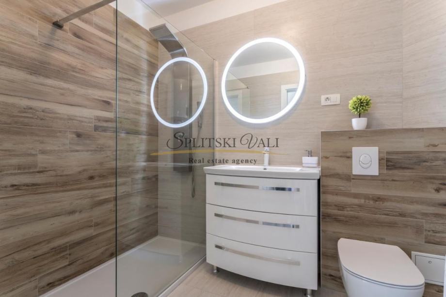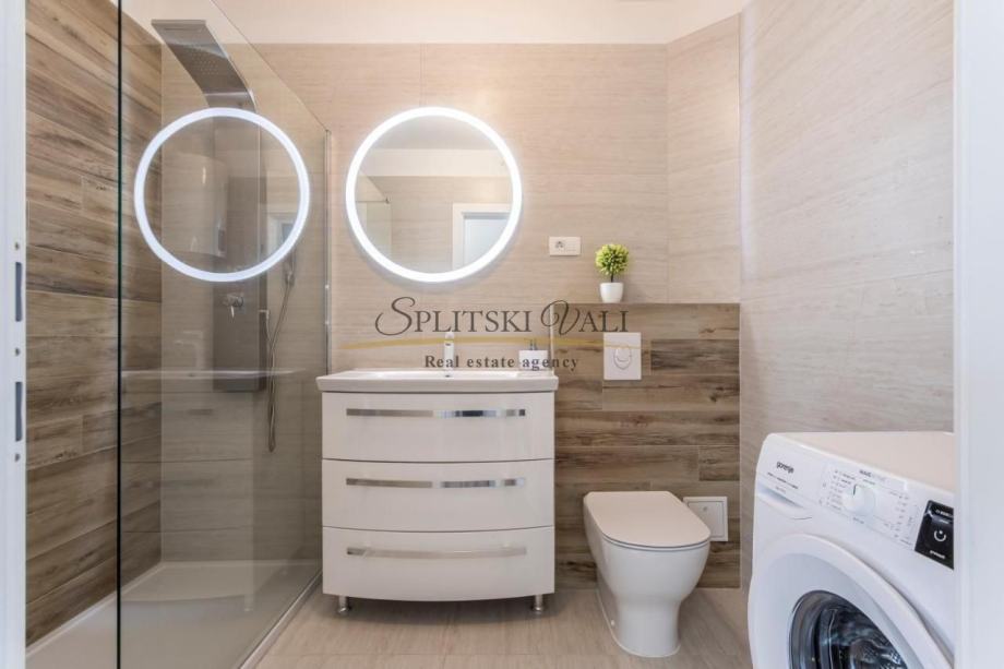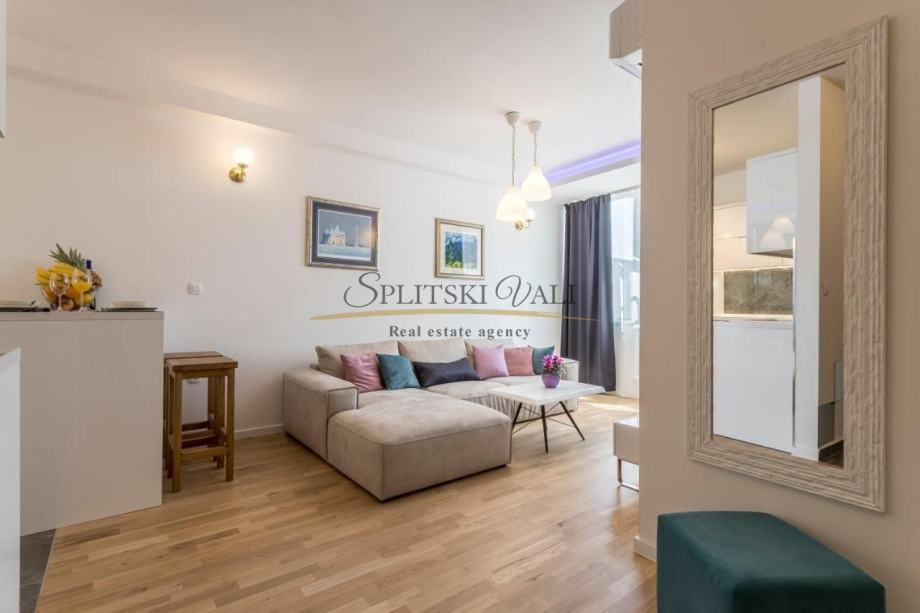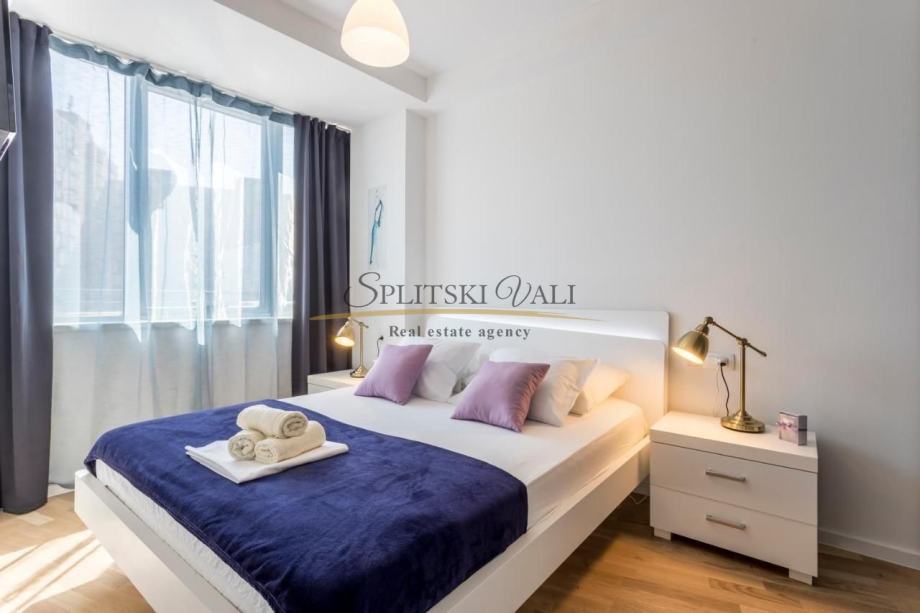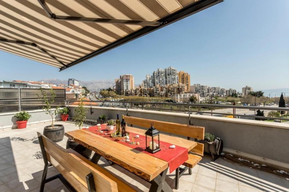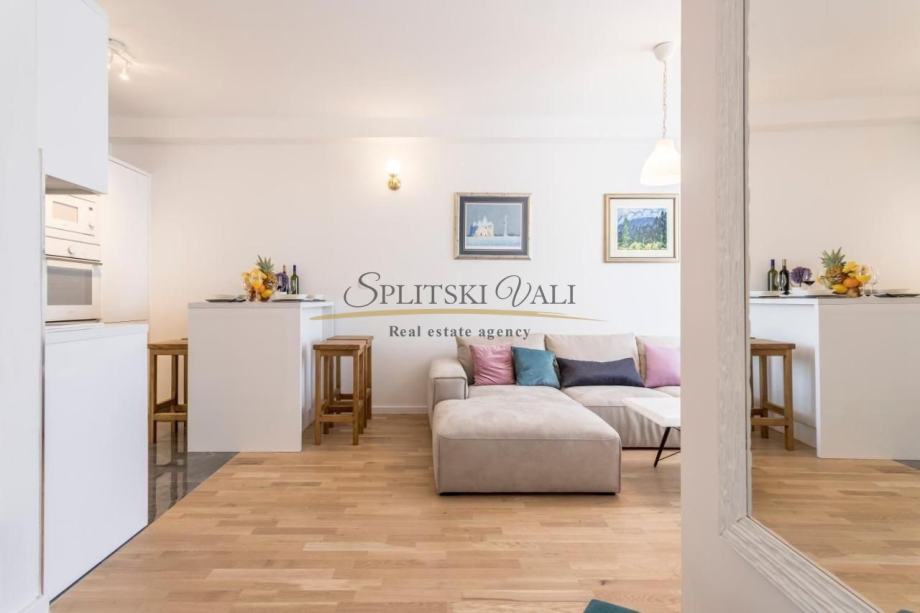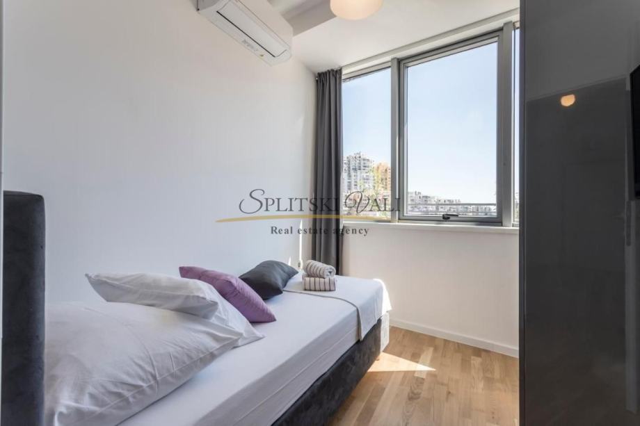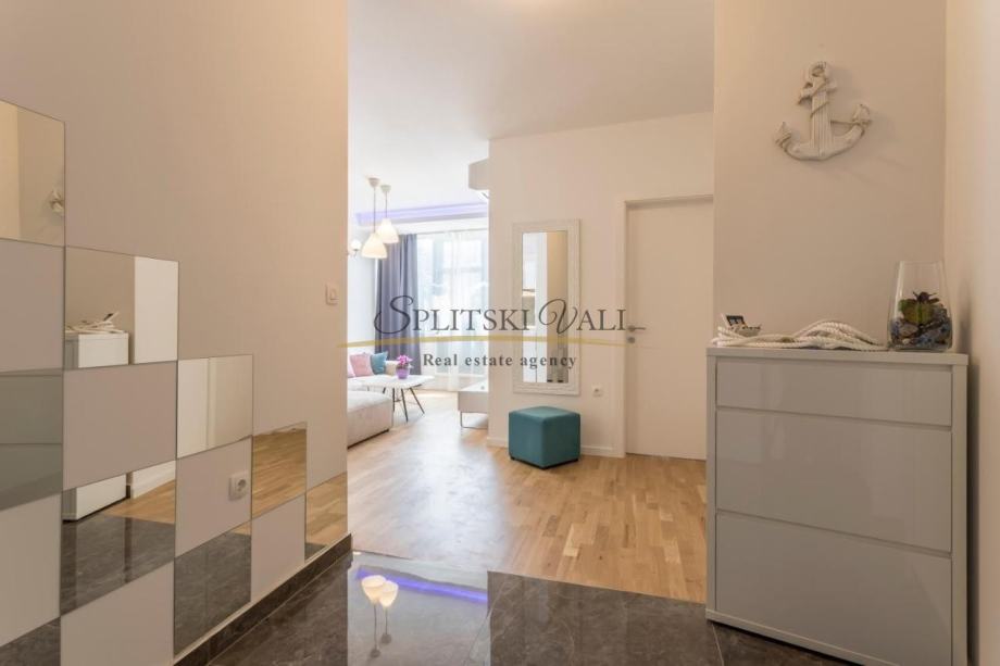 Stan također ima i garažno parkirno mjesto koje je direktno povezano liftom. Zgrada se sastoji od četiri kata te se nalazi u mirnom okruženju te je u blizini svih sadržaja. Udaljenost od mora te poznate plaže Žnjan je nekoliko minuta.