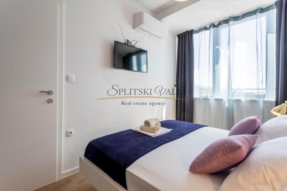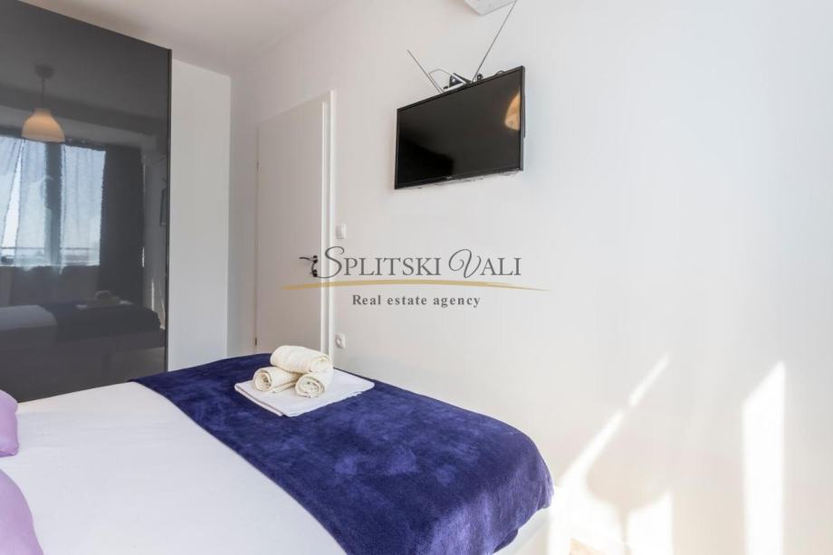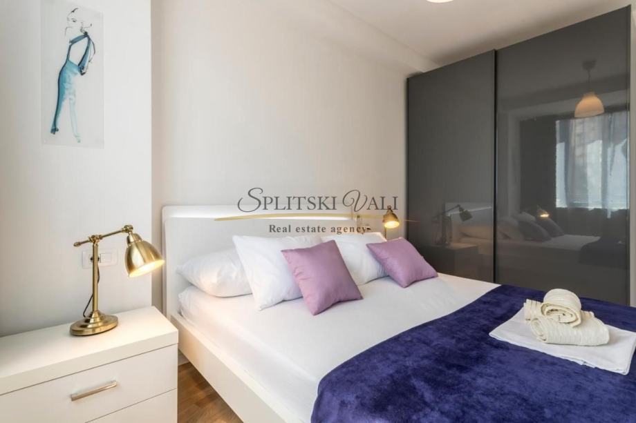 U svakoj od spavaćih soba te u dnevnom prostoru, nalazi se po jedan klima uređaj. Stan je luksuzno opremljen, dizajnerskog interijera te se kao takav dosad iznajmljivao turistički