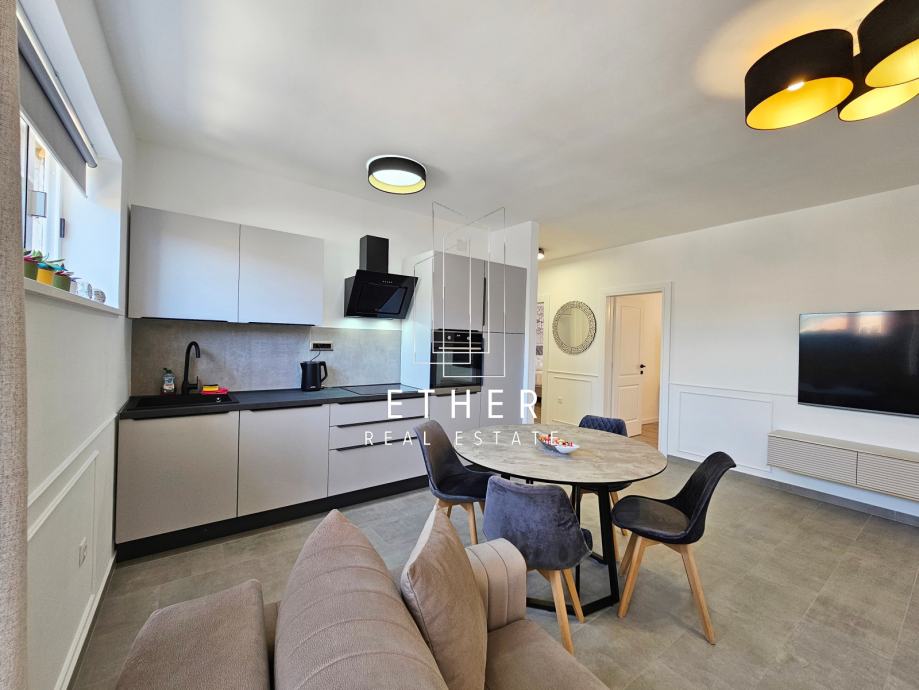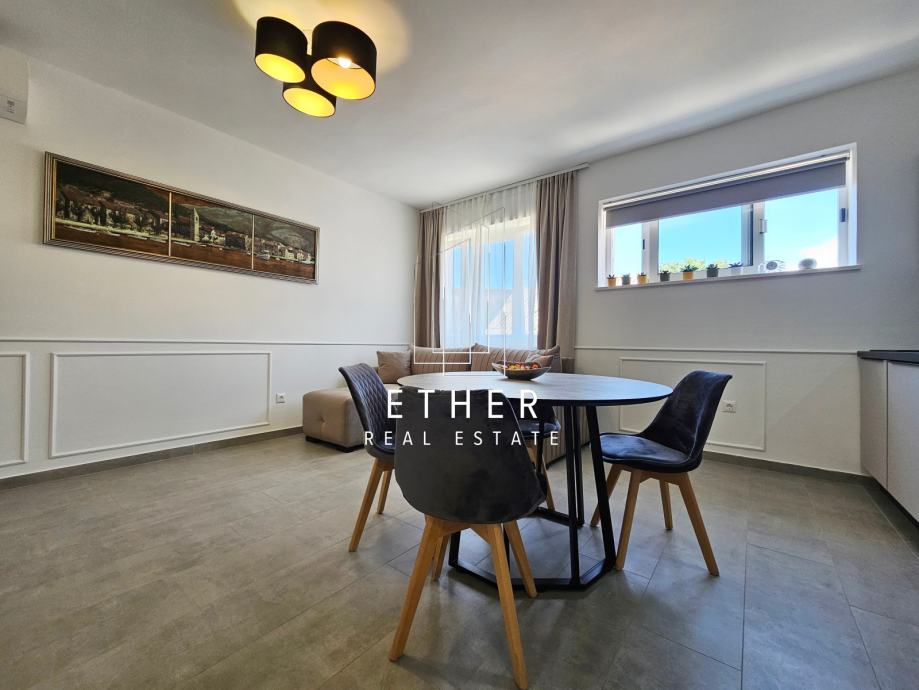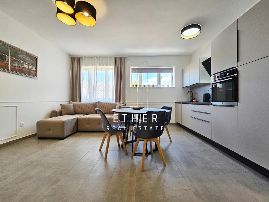 Dnevni boravak, kuhinja i blagovaonica su otvorenog koncepta . Svijetle boje interijera stvaraju dojam prozračnosti, dok su moderni detalji pomno birani kako bi stvorili suvremen i elegantan prostor.