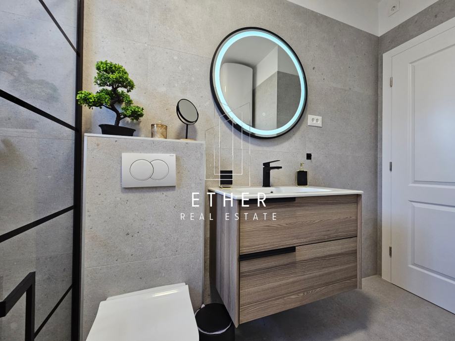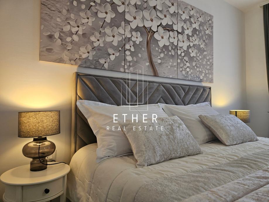 The apartment is superbly equipped with high-quality furniture and appliances (TV, air conditioning, washing machine, dishwasher, microwave oven), underfloor heating has been installed in the bathroom.