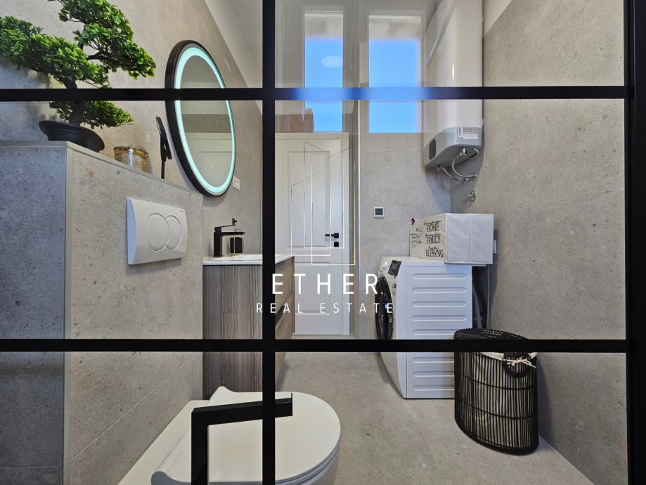 Stan je vrhunski opremljen namještajem i uređajima visoke kvalitete (TV, klima, perilica rublja, perilica posuđa, mikrovalna pećnica), u kupaonici je uvedeno podno grijanje.