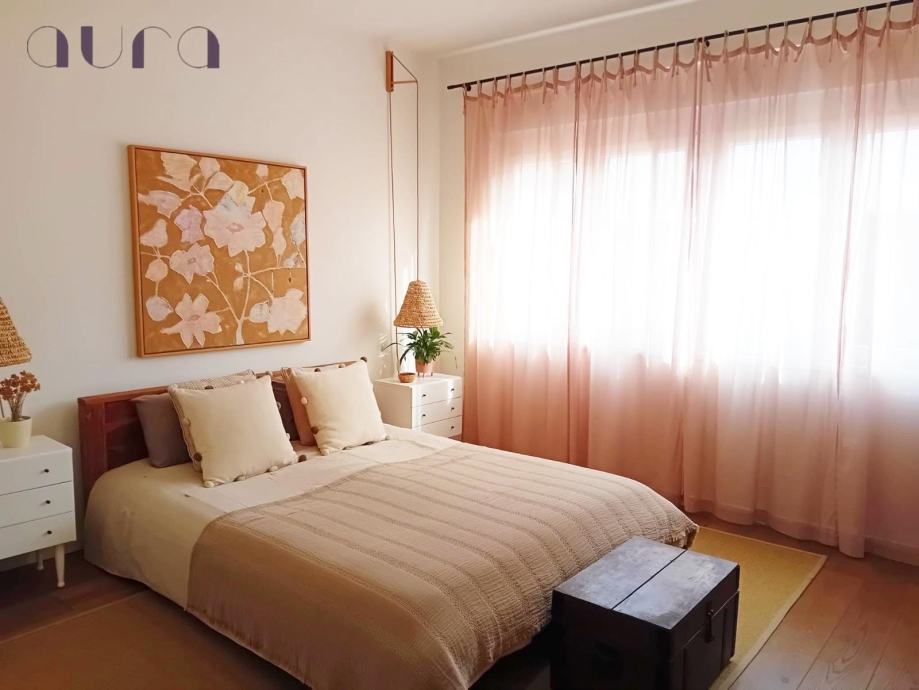 The apartment features two spacious and bright bedrooms, blending the charm of traditional design with modern elegance. Serenity, comfort, and a sense of home prevail throughout.