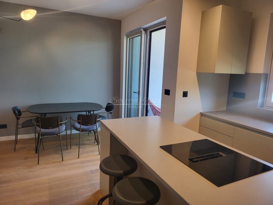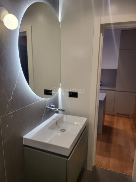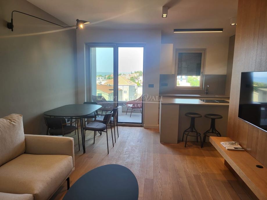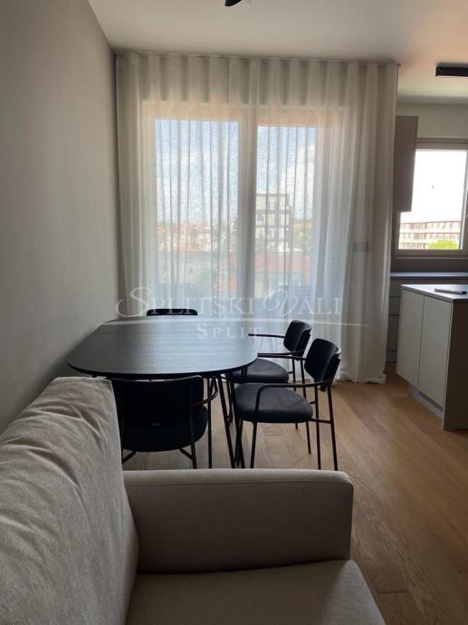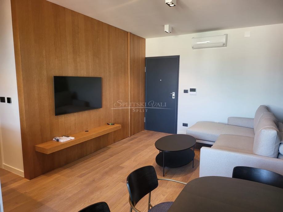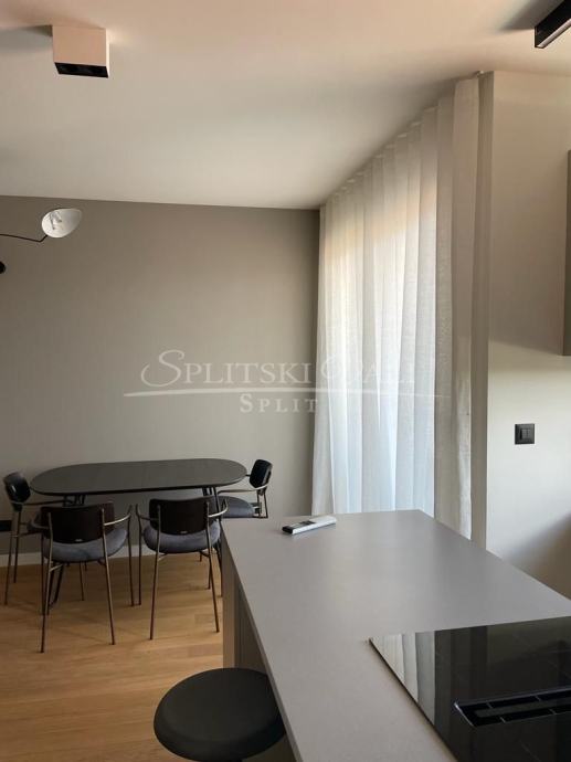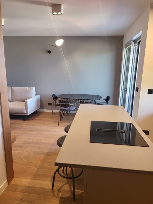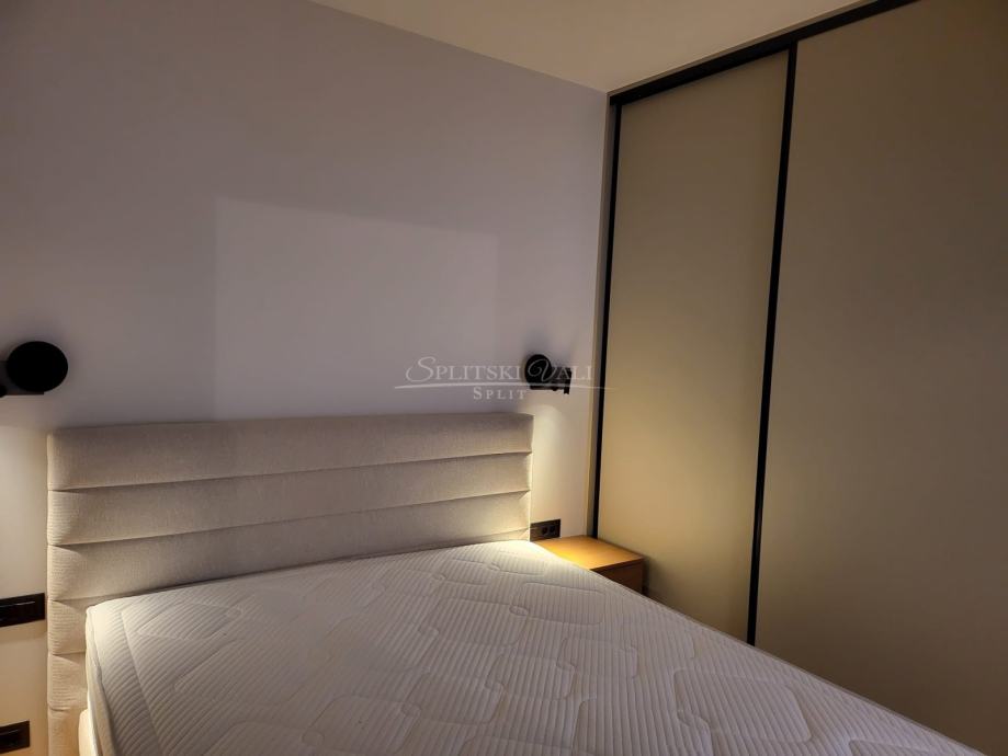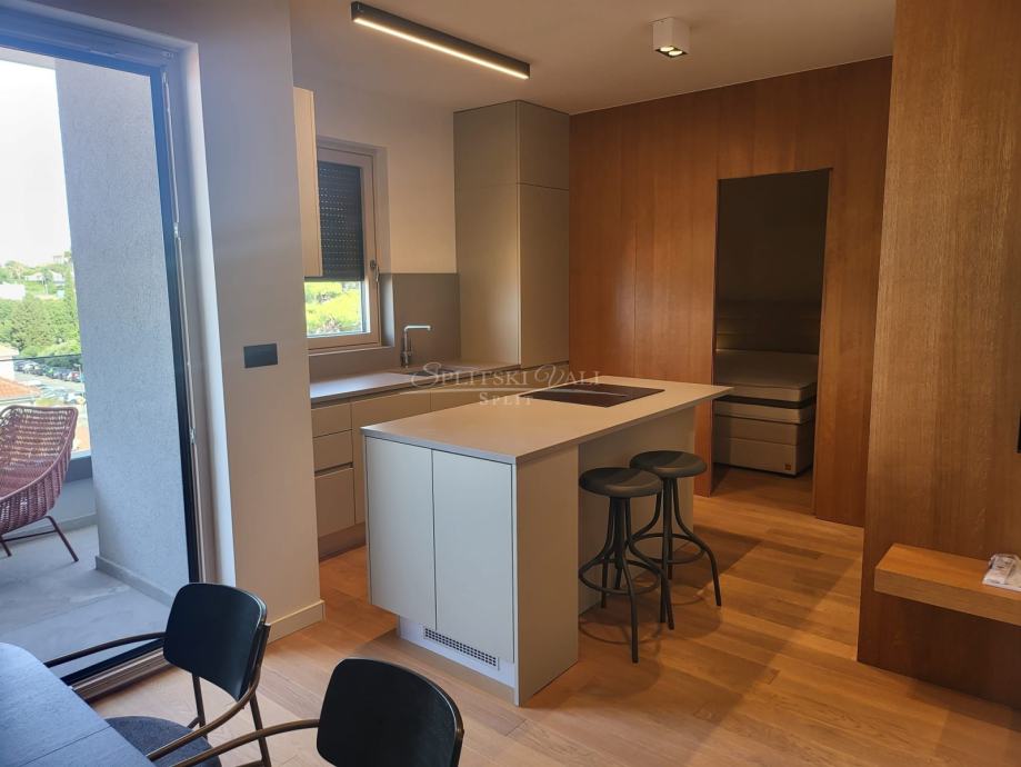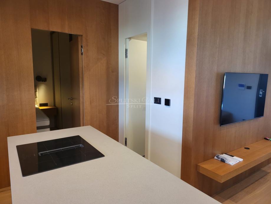 Stan se sastoji od jedne sobe, dnevnog boravka, balkona s pogledom na more, te kupaone. Stan ima svoje parkirno mjesto u podzemnoj garaži.