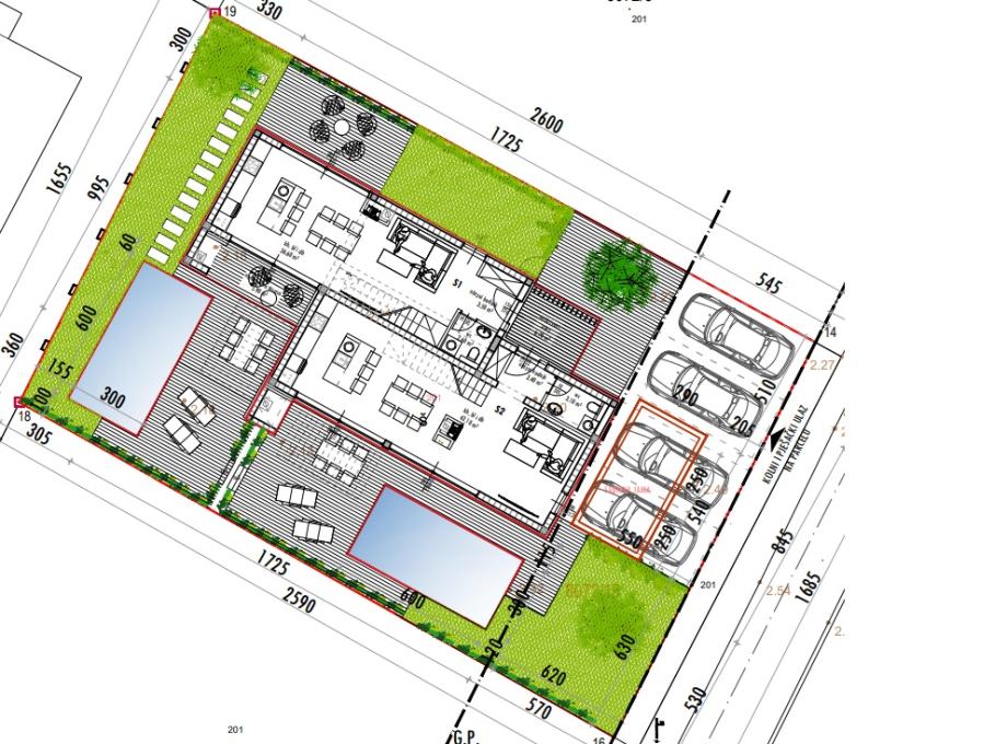 Predmetna nekretnina je dvoetažna i proteže se kroz prizemlje i prvi kat. Pametno osmišljeni raspored s dnevnim dijelom u prizemlju iz kojega se izlazi u dvorišni prostor s bazenom i roštiljom, te sobama i kupaonicama na katu osigurava budućem vlasniku svakodnevno uživanje u prizemlju i prostor za odmaranje na katu.