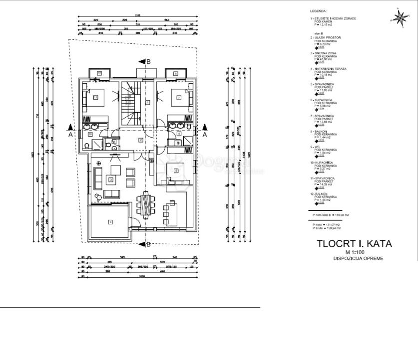 Luksuzno uređen stan površine 120 m² nalazi se na 1. katu novogradnje.