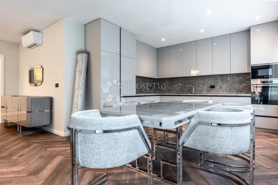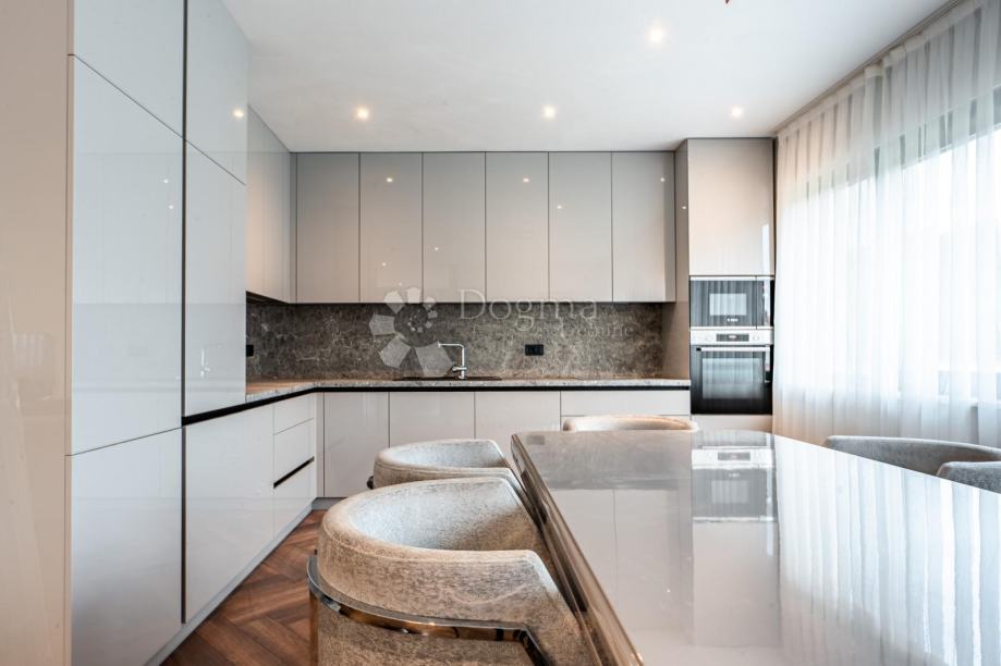 Stan je opremljen najnovijom tehnikom i pametnim rješenjima, poput podnog grijanja, klimatizacije, modernih aparata i vrhunske sanitarije.