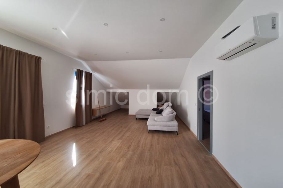 Posredujemo u prodaji prostranog, izuzetno kvalitetnog i luksuznog penthouse apartmana na atraktivnoj lokaciji koja se nalazi 300m od mora. Ukupna je površina ovog novosagrađenog apartmana 149m2 te se prostire na dvije etaže. Na prvoj se etaži nalaze spavaća soba, kupaonica, dodatan toalet, vrlo velik dnevni boravak s kuhinjom i blagovaonicom te loggia. Na drugoj su, pak, etaži još dvije spavaće sobe, dvije kupaonice, loggia i uistinu spektakularna terasa koja nudi nevjerojatan pogled na more i Bašku Vodu. Uz nadoplatu je moguće kupiti i vanjsko parkirno ili garažno parkirno mjesto. Stan je upravo luksuzno opremljen vrhunskim namještajem po mjeri, a što ovom jedinstvenom penthouseu dodaje na dojmu kvalitete. Zgrada je građena vrhunskim materijalima, a njezina tražena lokacija u blizini plaže, trgovina i samog centra mjesta je jamstvo vašeg ugodnog odmora ili isplativosti ulaganja u posao iznajmljivanja. Vlasništvo uredno.