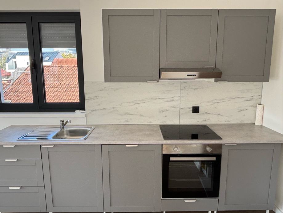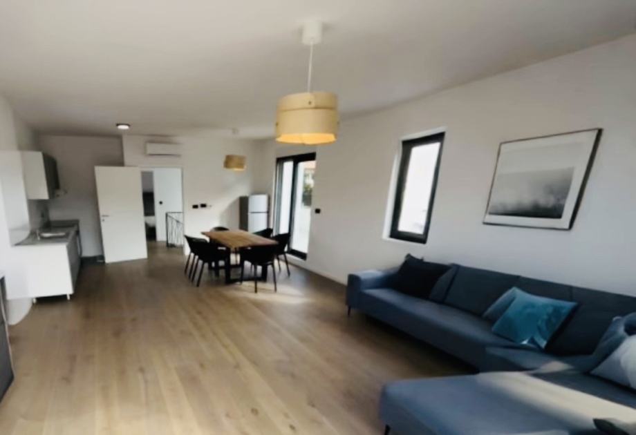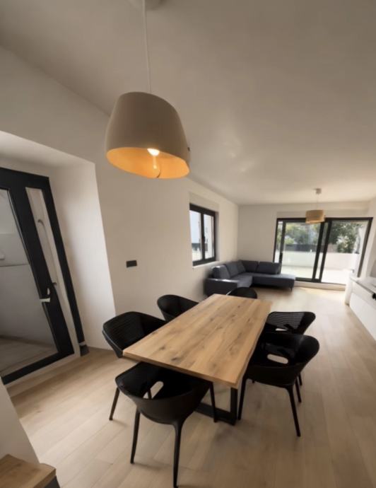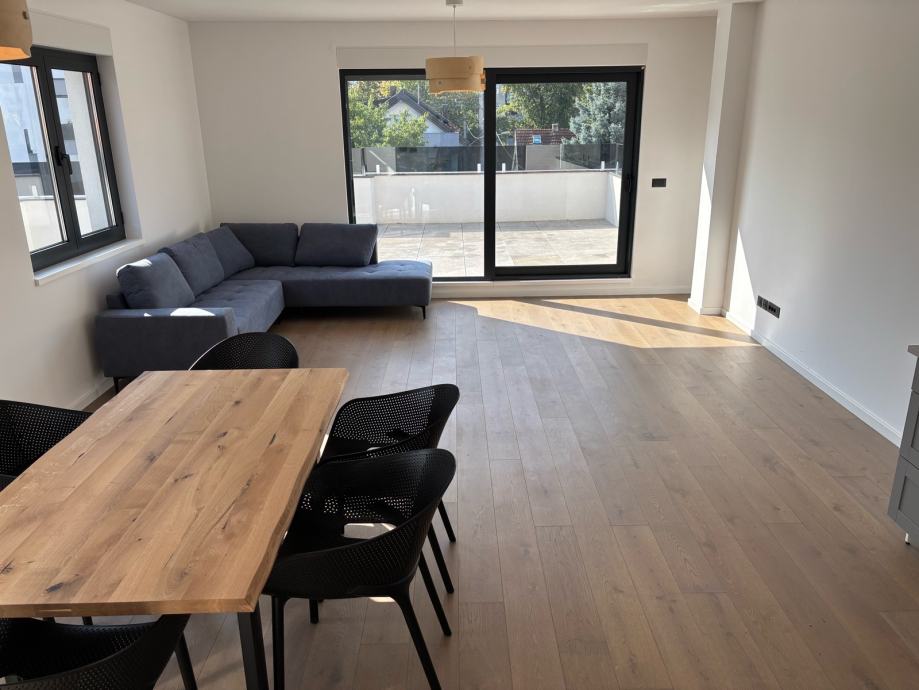 Iznajmljuje se luksuzan peterosoban stan u novogradnji, nikad useljen, s potpuno novim namještajem i vrhunskim materijalima. Stan je opremljen aluminijskom stolarijom, električnim podizačima za rolete, podnim grijanjem te klimatizacijom u svim prostorijama.