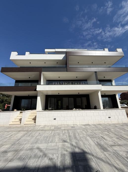 Zgrada je u izgradnji i sastoji se od šest stanova i 2 ekskluzivna penthouse-a. Svi stanovi imaju otvoren pogled na more, a ovaj konkretni stan ističe se velikom terasom i funkcionalnim rasporedom.
