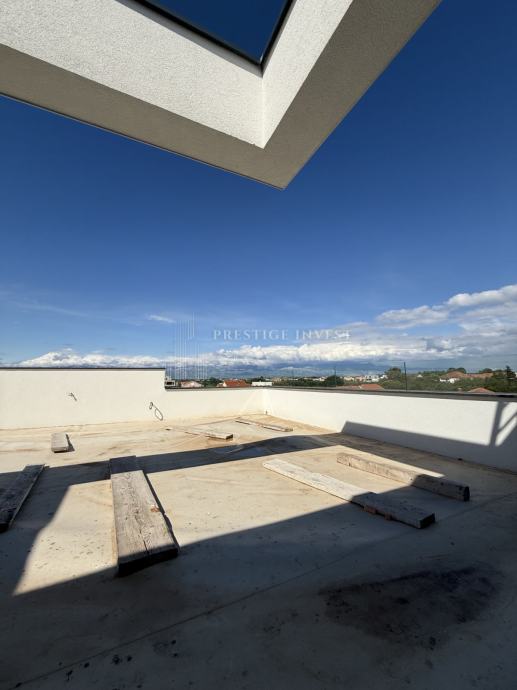 ZATON – Luksuzan PENTHOUSE s velikom terasom i krovnom terasom, pogledom na more i 2 parkirna mjesta – 20 m od mora