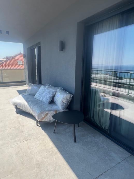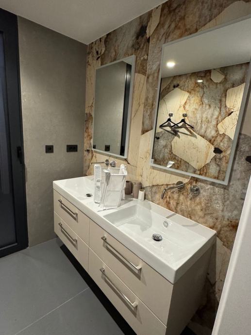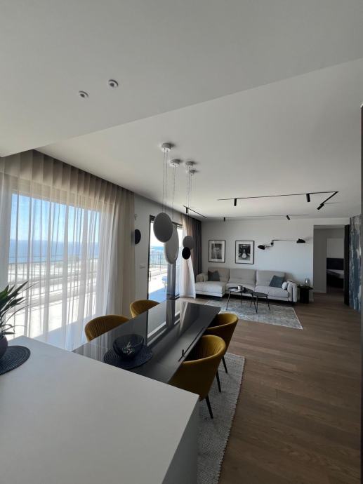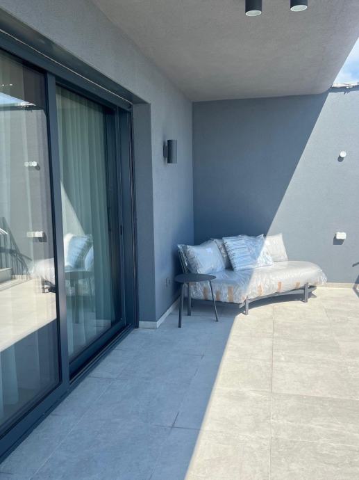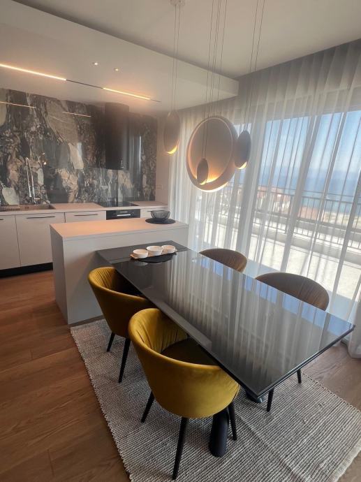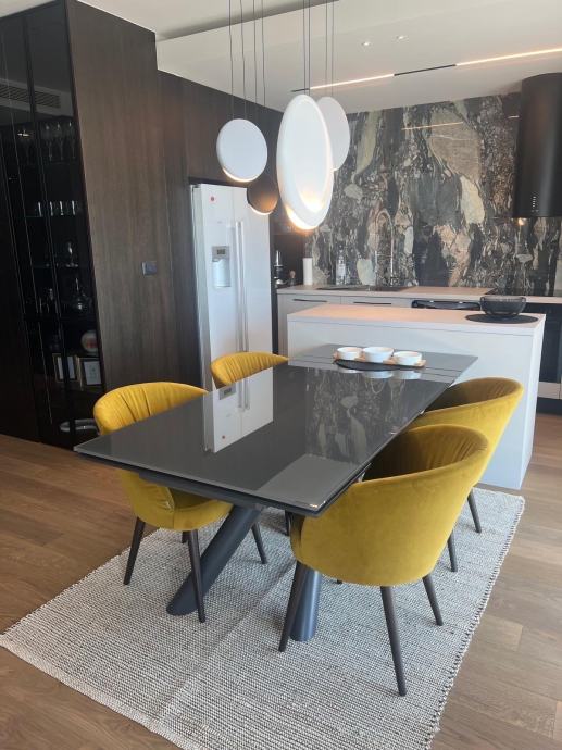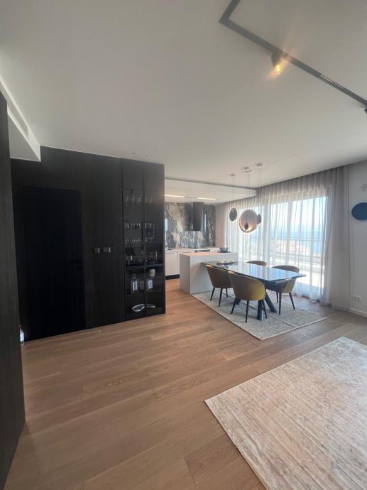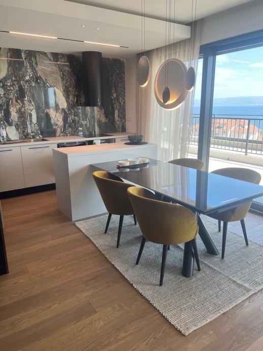 We mediate in the long-term rental of a luxurious penthouse located in a smaller residential building in Žnjan. The apartment has an open, beautiful view of the sea and the islands. It has 100m2 of living space and 70m2 of a beautiful terrace with a view. It has three bedrooms, two bathrooms, a spacious living room and a kitchen with a dining area. It has two secured parking spaces in the garage. The monthly rent with including parking spaces in the garage. The apartment is extremely luxuriously decorated and equipped with all high-quality furniture and appliances. Very pleasant to live in, it has everything you need, and in the immediate vicinity there are all important and necessary facilities. It is only a few minutes' walk to the sea. All additional necessary info on CONTACT: 0915615115 (ZELJANA)