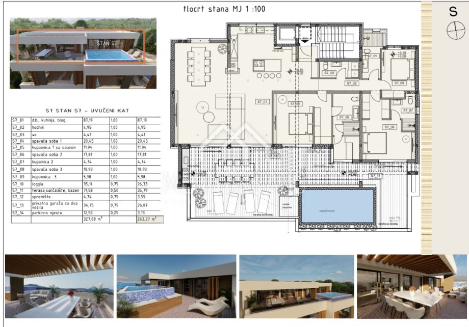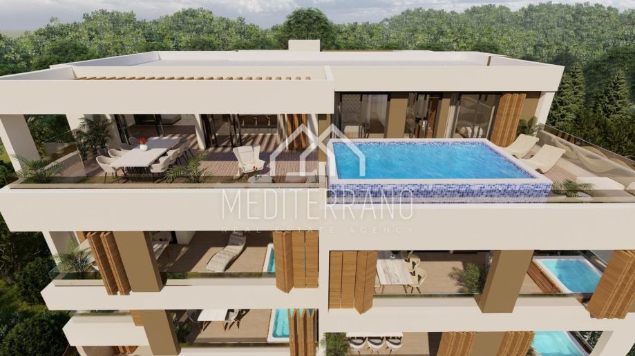 - privatne terase s bazenom i sunčalištem od 75 m2