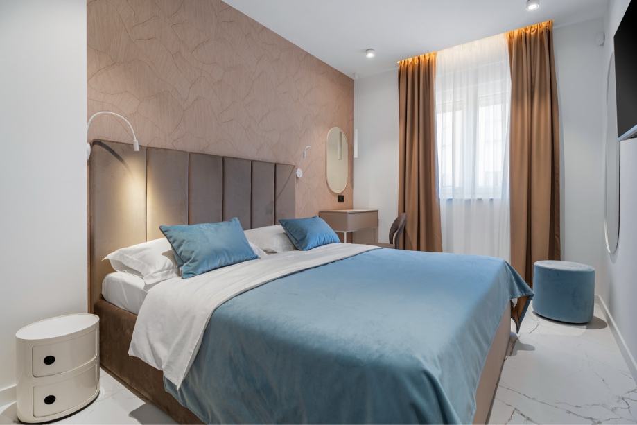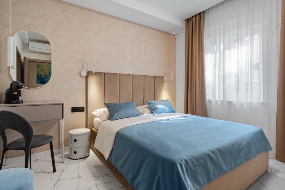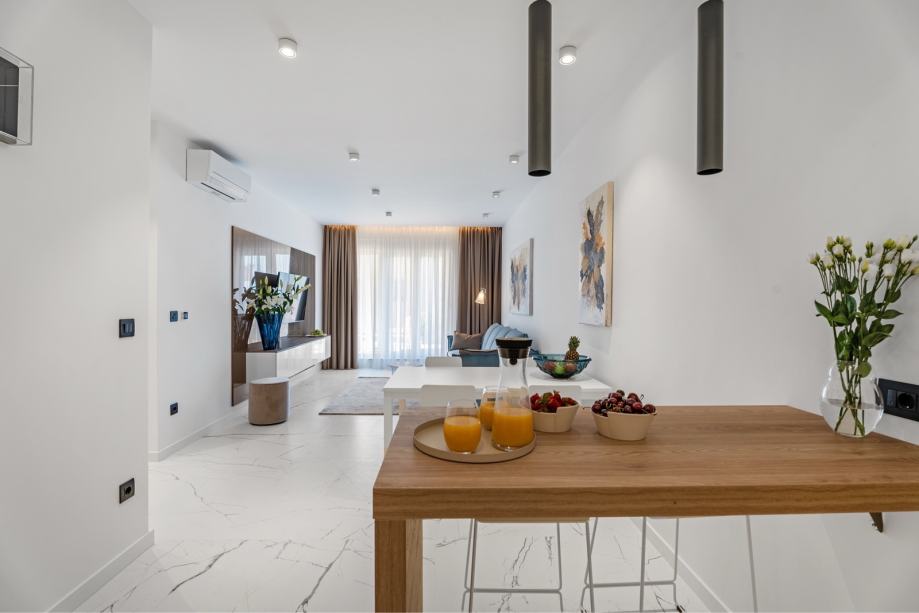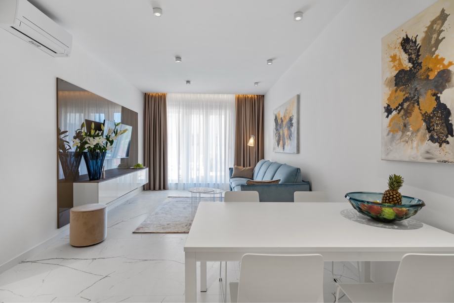 We are mediating in the long-term rental of a beautiful three-bedroom apartment located in one of the most elite parts of the city - in Meje. The apartment is located on the ground floor of a small building surrounded by greenery and beautiful landscaping. The apartment is 100m2 and consists of three comfortable bedrooms (each with its own bathroom, air conditioning and TV), hallway, kitchen with dining area and spacious living room with access to a beautiful terrace for outdoor enjoyment. The apartment also has underfloor heating. It is fully luxurious and modernly equipped with everything you need for a functional and comfortable life. Available for rent immediately, for the whole year and longer. The monthly rental price is €2000. More additional info on CONTACT: 0915616295 (ANDREA)
