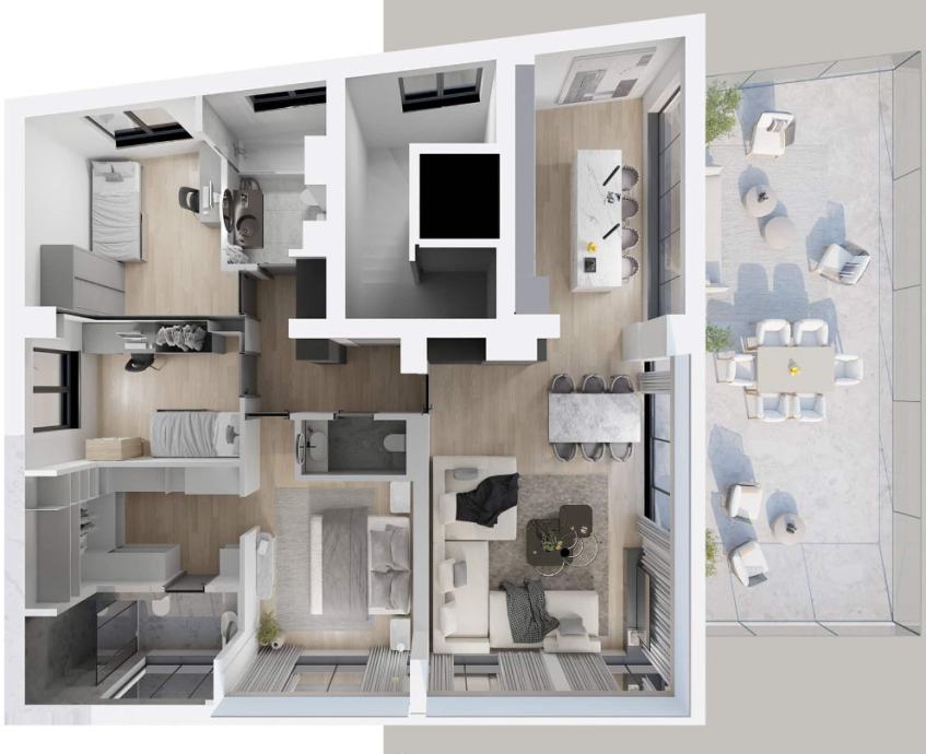 S5 penthouse: 112,54 m2 + 60,27 m2 terasa + 17,15 m2 GM