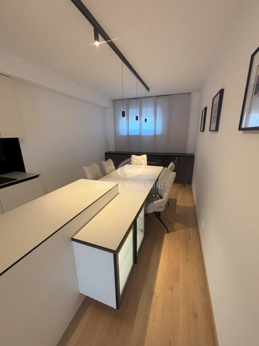Daje se u najam 4-soban površine 144 m2 sa 2 parkirališna mjesta, 2 velike kupaone, 2 terase, NOVOGRADNJA U STROGOM CENTRU GRADA, 1 min od gradske tržnice i Korza, niske režije. Sastoji se od : predprostor od 4.80 m2, dnevni boravak od 21.00 m2, soba 1 od 12.80 m2, soba 2 od 13.60 m2, hodnik od 4.40 m2, kupaona 1 od 6.80 m2, kupaona 2 od 8.30 m2, soba 3 od 13.80 m2, kuhinja i blagavaona od 19.00 m2, lođa 1 od 18.23 m2, lođa 2 od 4.65 m2, natkriveno parkirališno mjesto 21 u dvorištu od 9.53 m2 i parkirališno mjesto 3 u dvorištu od 7.08 m2.
