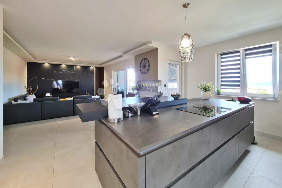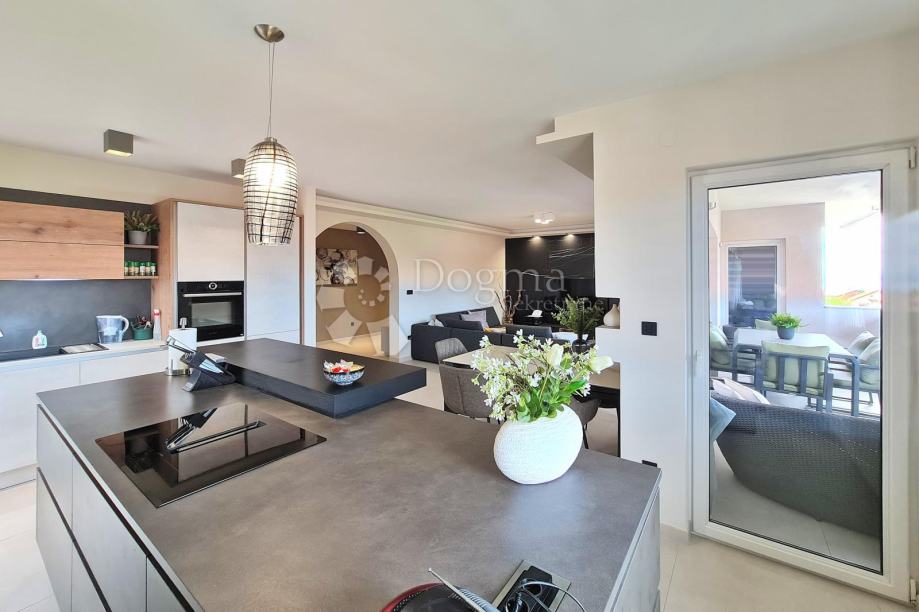Javite nam se za razgled i koraknite s nama u prostrani ulazni hodnik koji vodi do moderne kuhinje s blagovaonicom, i do velikog dnevnog boravka s izlazom na prekrasnu i prostranu terasu zaklonjenu od pogleda koja pruža dodatan prostor za opuštanje i uživanje u mirnim trenucima.