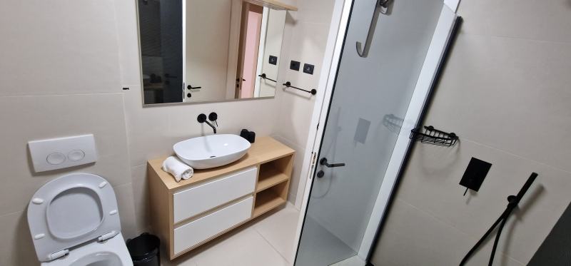 Sanitarije: Rubinetterie,Treemme (slavine), Flaminia umivaonik i wc školjka, tuš kade po mjeri - Hidrobox Neo, tuš kabine Huppe