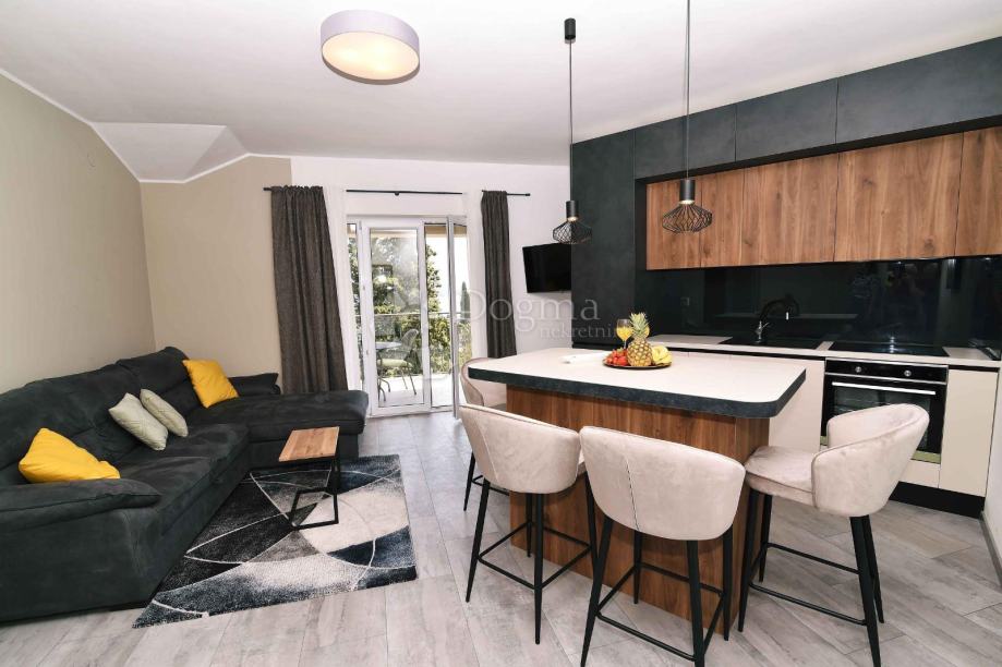 Stan je novi, opremljen vrhunskim namještajem i tehnikom. Mirna lokacija, okružena zelenilom, velika terasa sa pogledom.