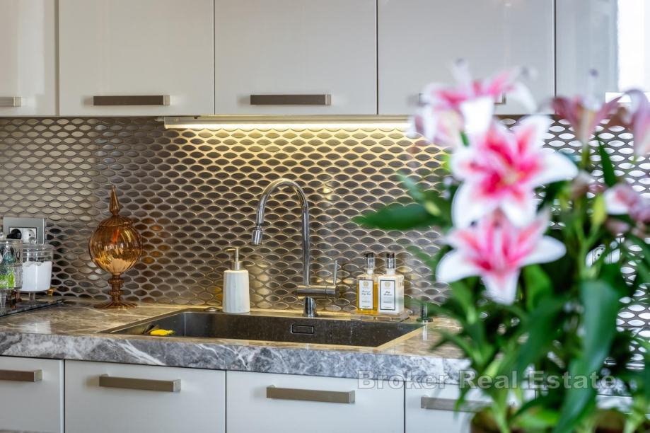 Stan se prodaje u potpunosti namješten, s vrhunskim dizajnerskim namještajem i opremom visoke klase – spreman za useljenje bez dodatnih ulaganja.