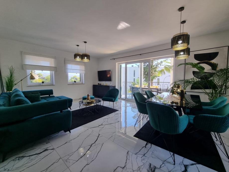 Stan se sastoji od dvije prostrane spavaće sobe, hodnika veličine 10 m², kupaonice, dodatnog malog WC-a te blagovaonice, kuhinje i dnevnog boravka, koji su povezani u harmoničan otvoreni koncept. Terasa s pogledom na bazen pruža idealan kutak za opuštanje ili druženje na svježem zraku, dok moderno uređenje svakog prostora osigurava da će svaki trenutak proveden ovdje biti užitak.
