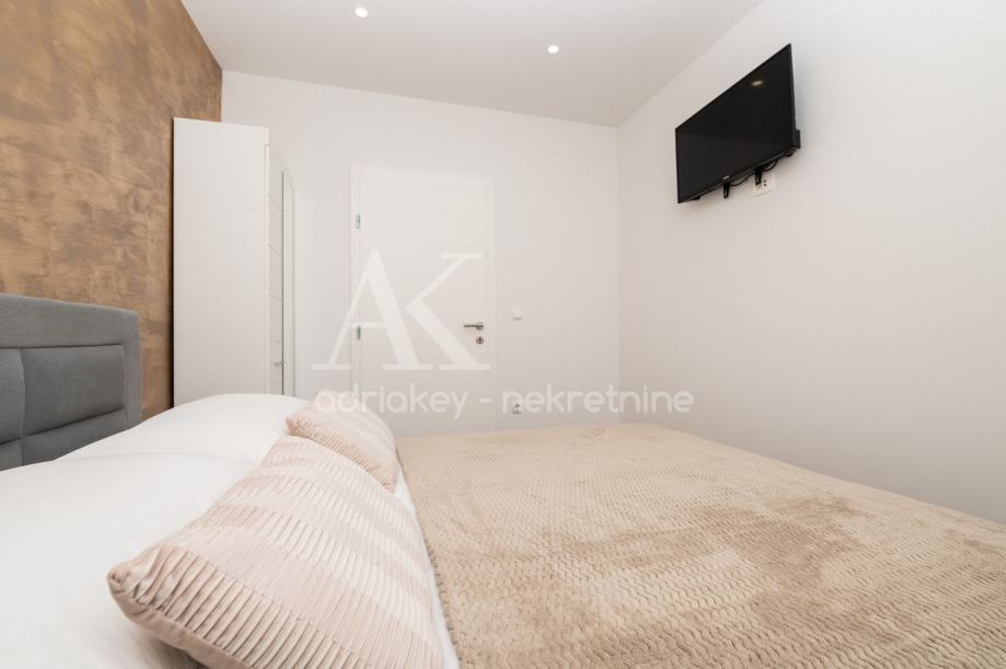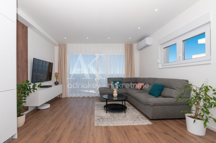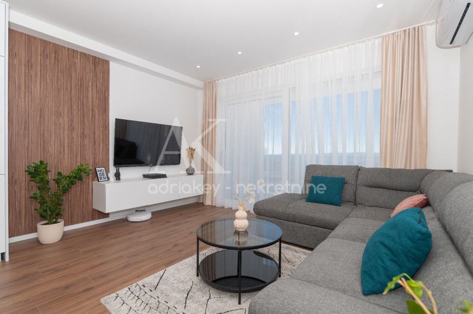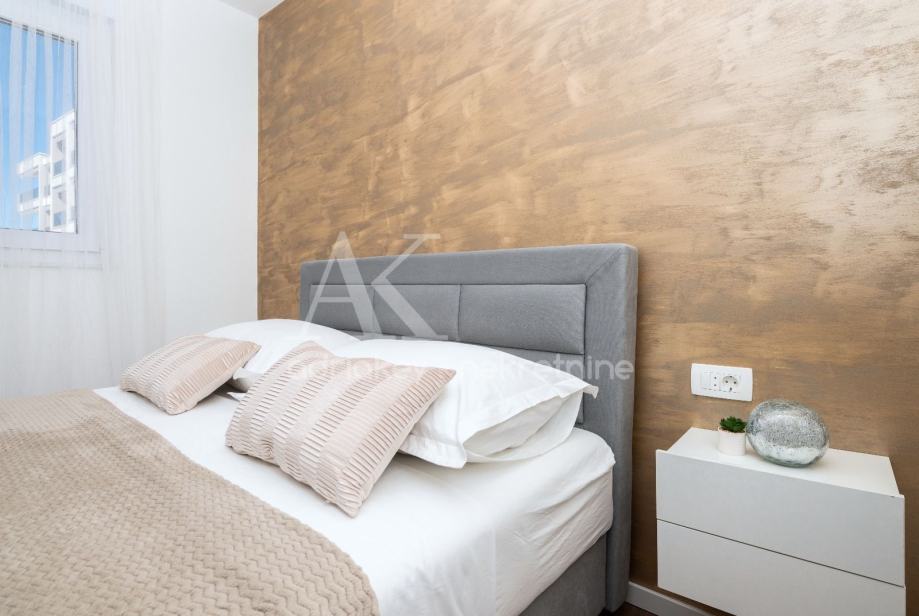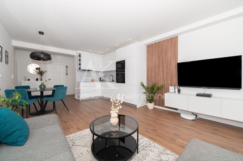 Sastoji se od open space koncepta dnevnog boravka, kuhinje i blagovaonice, dvije spavaće sobe, kupaonice te balkona.
