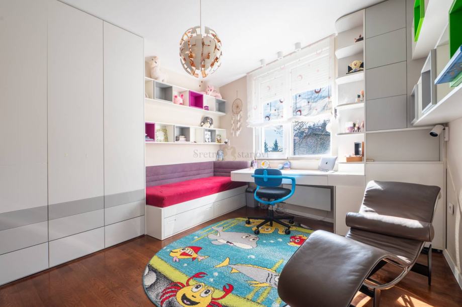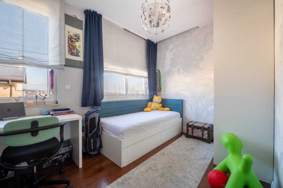 Uz vrhunsku opremu i dizajn, posebna prednost ovog stana je i ograđena šumica/park sa trampolinom te ostalom opremom za djecu i 3 parkirna mjesta.