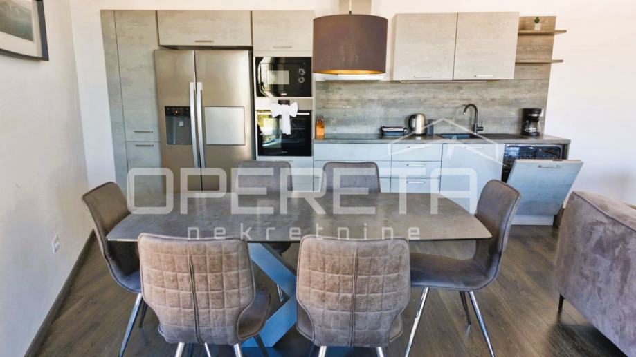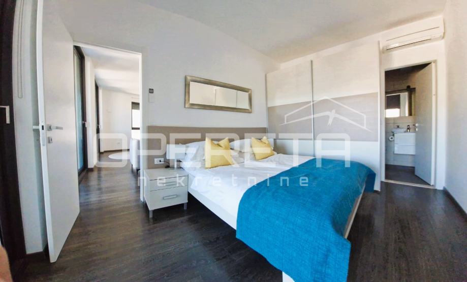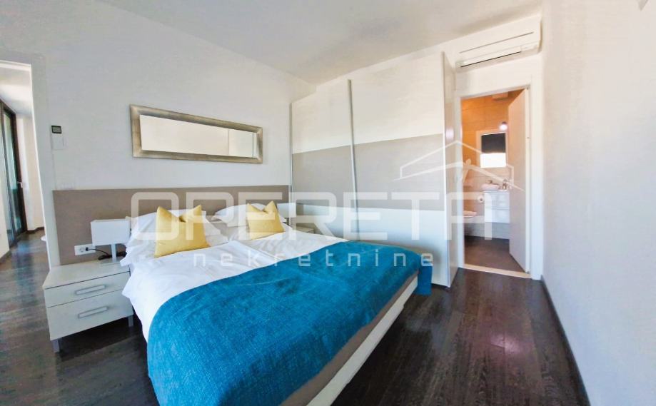 Apartman je opremljen klima jedinicama u svim sobama, što osigurava optimalne uvjete tijekom cijele godine. Osim toga, stan posjeduje vlastito garažno mjesto s liftom koji vodi direktno do stana, čime je osigurana praktičnost i sigurnost za vlasnike i goste.