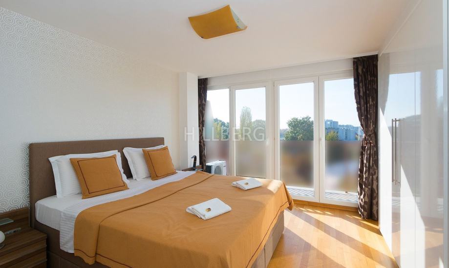 Sastoji se od blagovaonice, dnevnog boravka s izlazom na balkon od 9 m, kuhinje, 2 spavaće sobe, kupaonice s kadom.