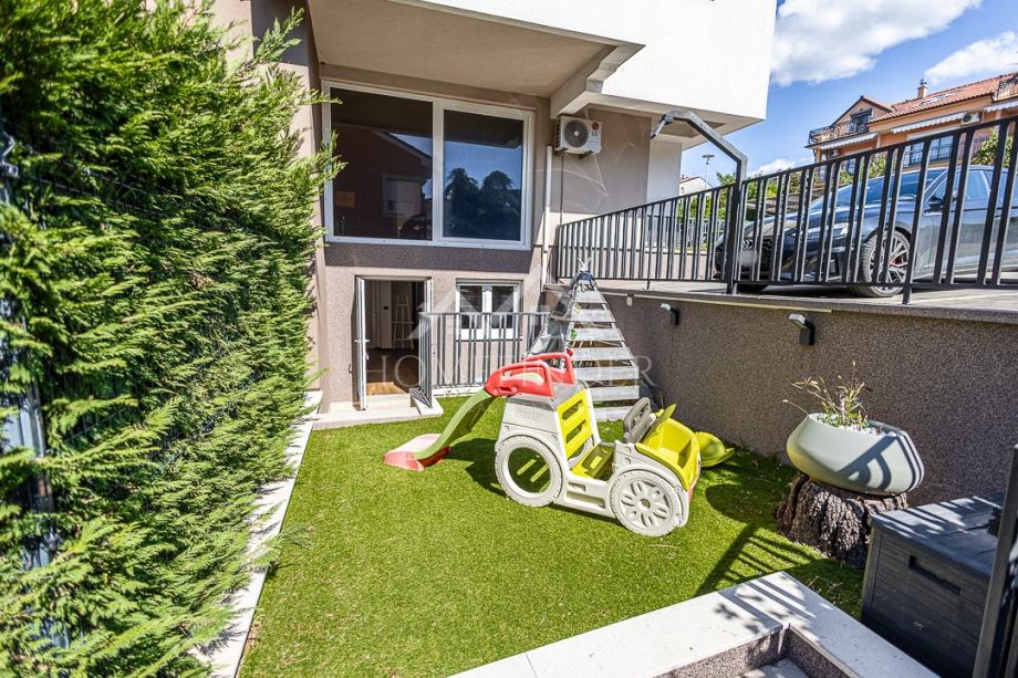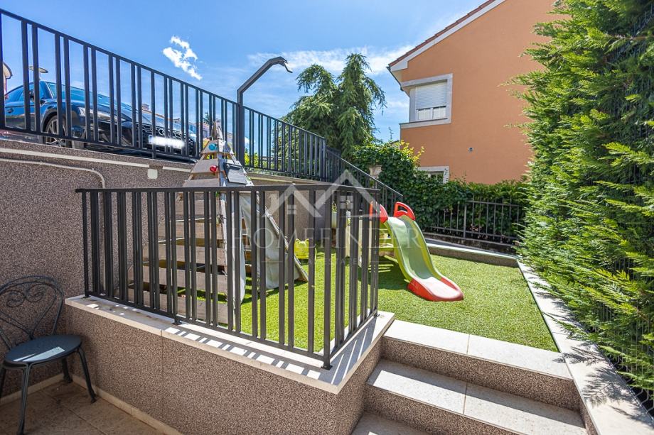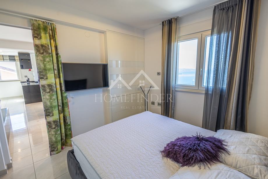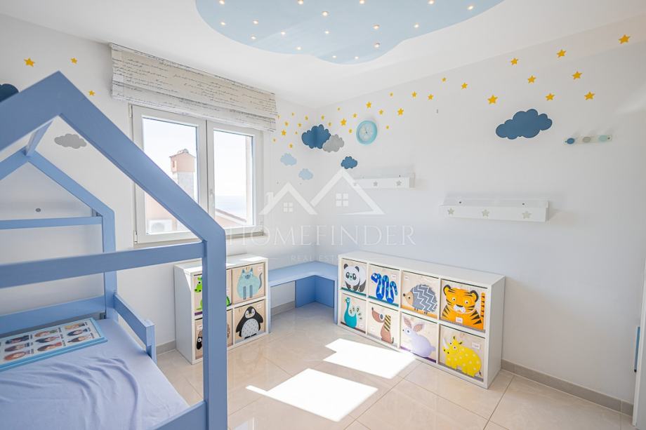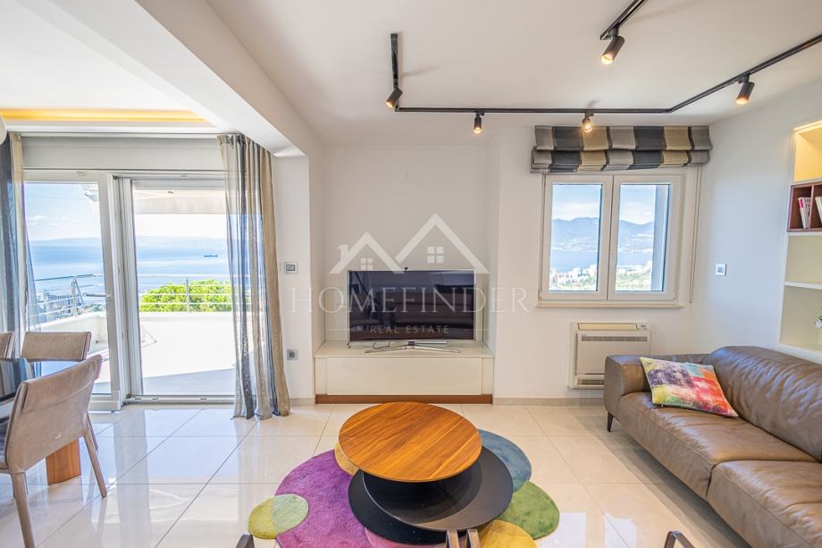 U novijoj modernoj zgradi, u najatraktivnijoj i mirnoj ulici na Drenovi, prodaje se luksuzan stan od 78,5 m² s dnevnim boravkom i dvije spavaće sobe, terasom s otvorenim pogledom na more, garažom od 39,5 m², dva vanjska parkirna mjesta, konobom od 39,5 m² s vlastitim ulazom te uređenim vrtom od 75 m² s navodnjavanjem, umjetnom travom i privatnim parkićem za djecu.
