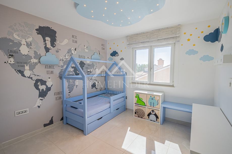 Kuhinja Scavolini s Miele uređajima jamči vrhunsku funkcionalnost, dok se u konobi nalazi Danküchen kuhinja s Bosch uređajima. Ugradbeni ormari omogućuju odličnu organizaciju prostora, a privatni parkić u vrtu čini ovu nekretninu idealnom za obitelj.