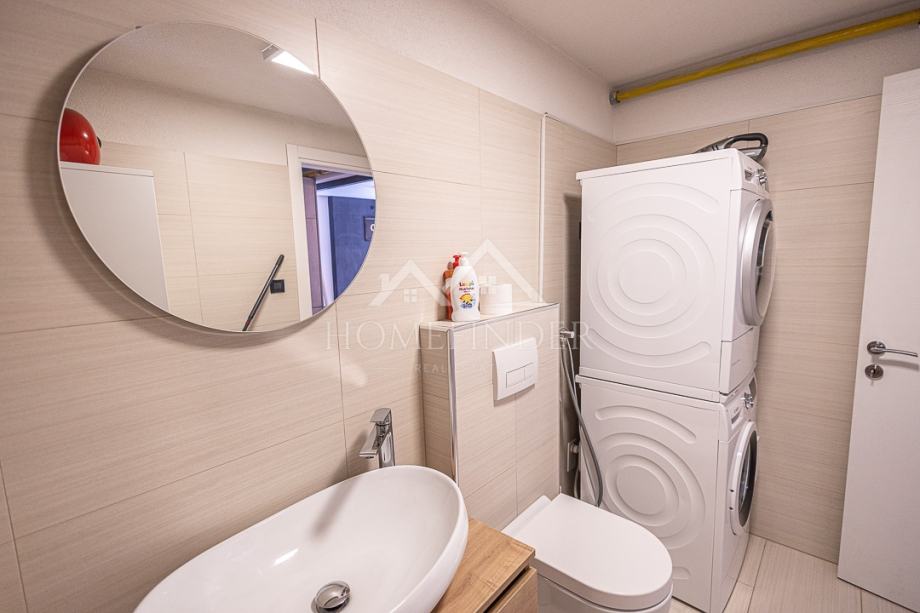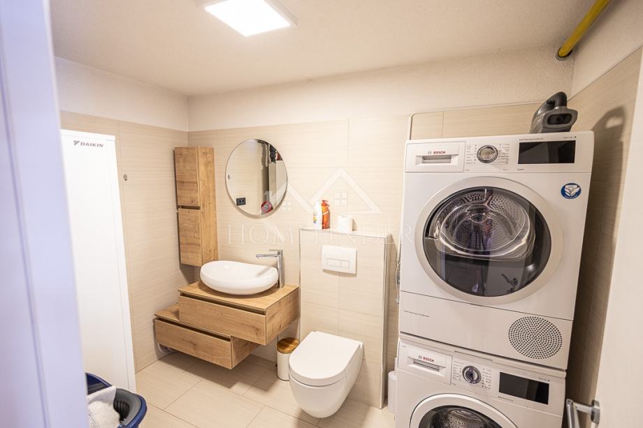 Stan je južno orijentiran, svijetao i prozračan. Sustav grijanja- podno grijanje u cijelom stanu putem dizalice topline Daikin i plinski kamin s dekorativnim kamenom osiguravaju udobnost. Svi prozori opremljeni su komarnicima, te je LED rasvjeta postavljena u cijelom stanu.