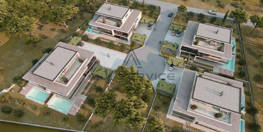 Ekskluzivna novogradnja u jednoj od najtraženijih destinacija na Jadranu. Na atraktivnoj lokaciji u Rovinju, udaljenoj svega 1.500 metara od prekrasnih plaža, smještena je moderna i impresivna stambena zgrada s ukupno četiri prostrana stana. Dva stana u prizemlju raspolažu vlastitim bazenima i velikim privatnim vrtovima, dok stanovi na katu imaju i privatne krovne terase s panoramskim pogledom.