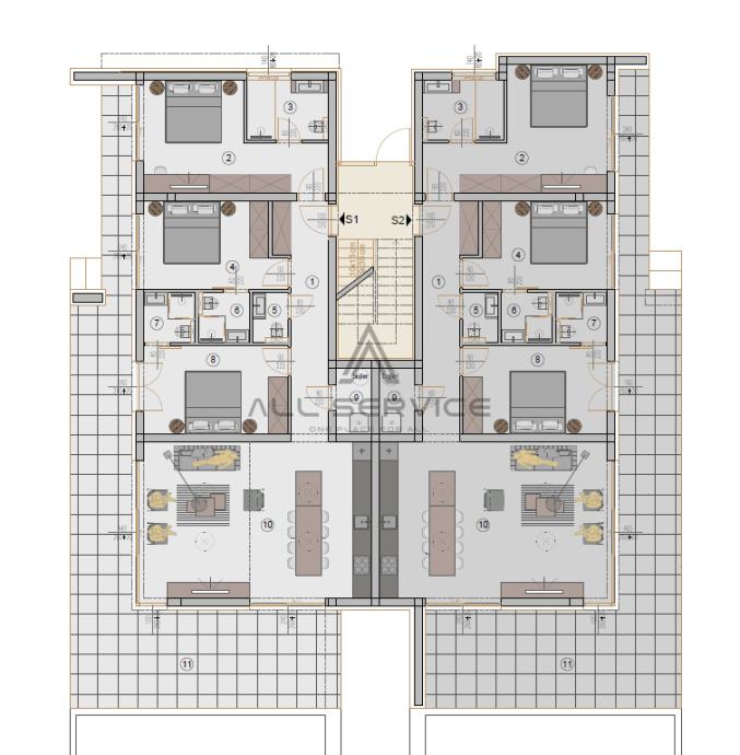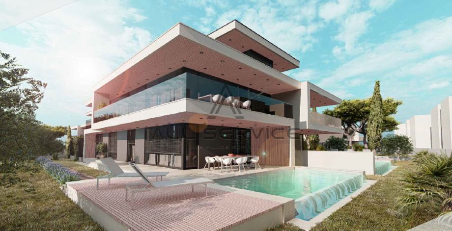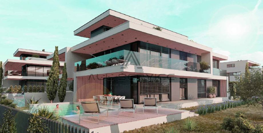 Ekskluzivna novogradnja u jednoj od najtraženijih destinacija na Jadranu. Na atraktivnoj lokaciji u Rovinju, udaljenoj svega 1.500 metara od prekrasnih plaža, smještena je moderna i impresivna stambena zgrada s ukupno četiri prostrana stana. Dva stana u prizemlju raspolažu vlastitim bazenima i velikim privatnim vrtovima, dok stanovi na katu imaju i privatne krovne terase s panoramskim pogledom.