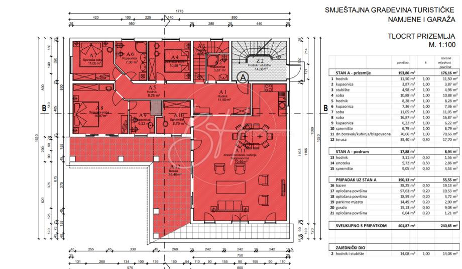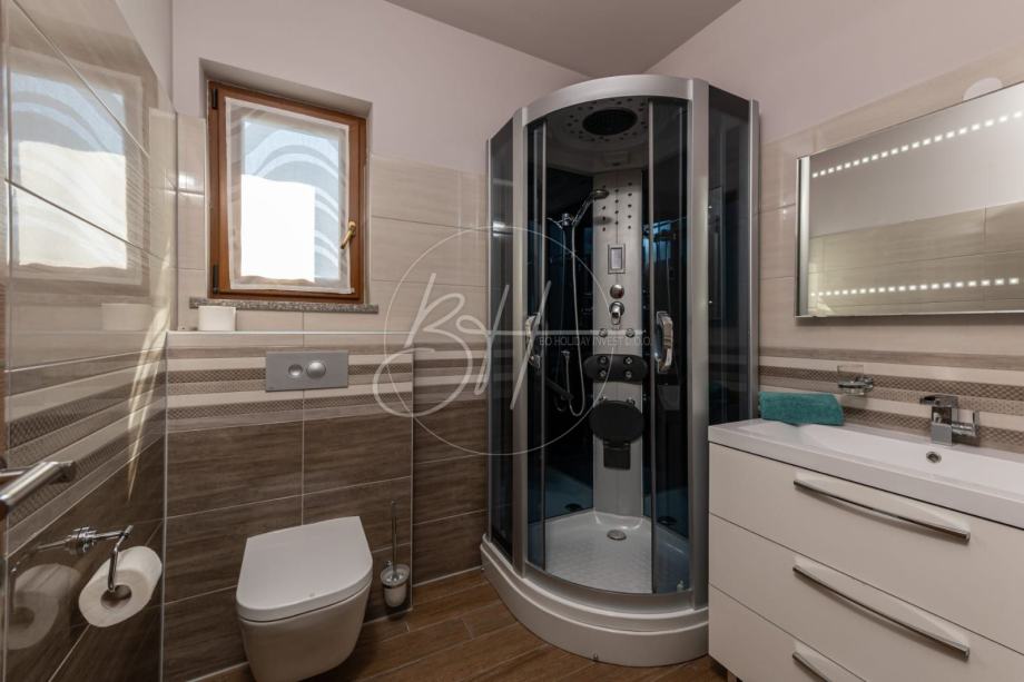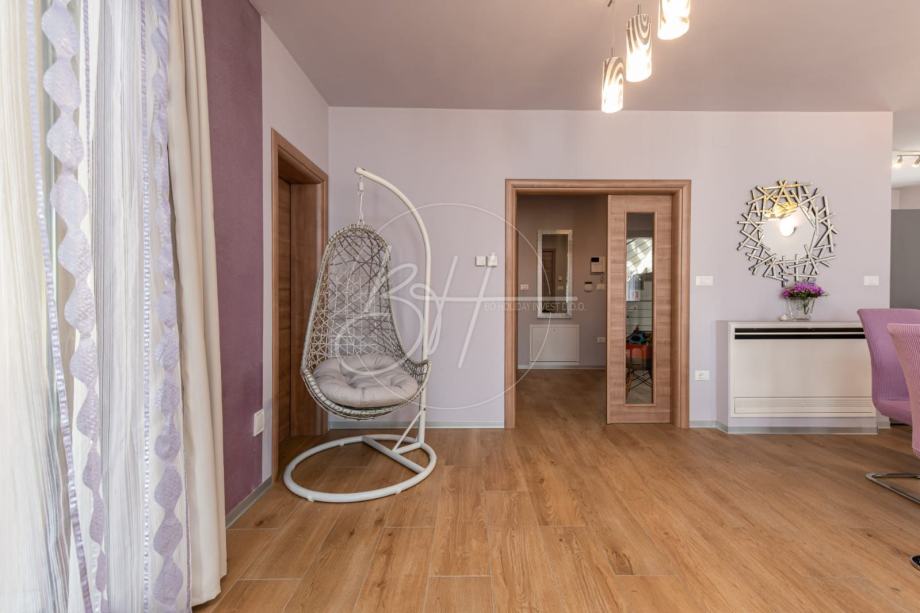 Prodaje se prostran i moderno uređen stan površine sveukupno 240 m², smješten u prizemlju kuće, s vlastitim bazenom i garažom. Ova nekretnina nudi vrhunski komfor, idealan za obiteljski život ili turistički najam.