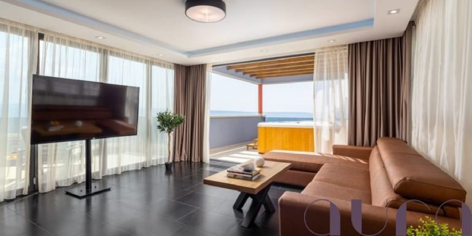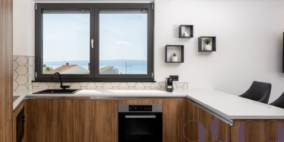 A beautiful, luxurious and modern apartment is for rent located in a new building, first row to the sea in Podstrana. The apartment has 90m2 and exudes freshness and luxury, and what wins you over the most is the open view of the sea and islands. It is a "smart house", underfloor heating, electronic roller shutters... the right to use the gym, sauna, restaurant within the building. The right to use two garage parking spaces! It is rented from 1.11.2025. until summer 2026. The monthly rental price is €1500. All additional information on request! CONTACT: 0915616295 (ANDREA)