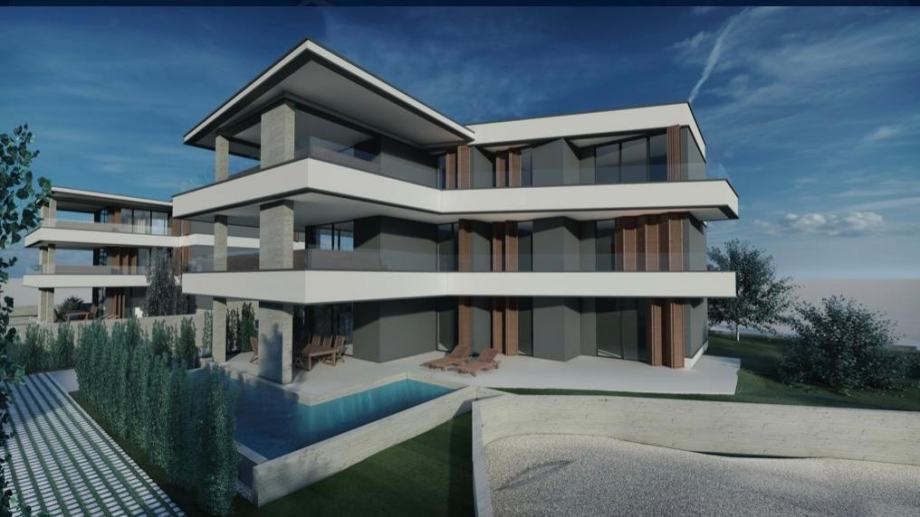 Na prodaju je luksuzni stan s bazenom, smješten na prvom katu moderne novogradnje u Novalji. Nalazi se na atraktivnoj lokaciji, udaljenoj svega 7-10 minuta hoda od mora i centra grada. Ova lokacija osigurava privatnost i mir, a stan nudi prekrasan pogled na more s terase i iz cijelog stana