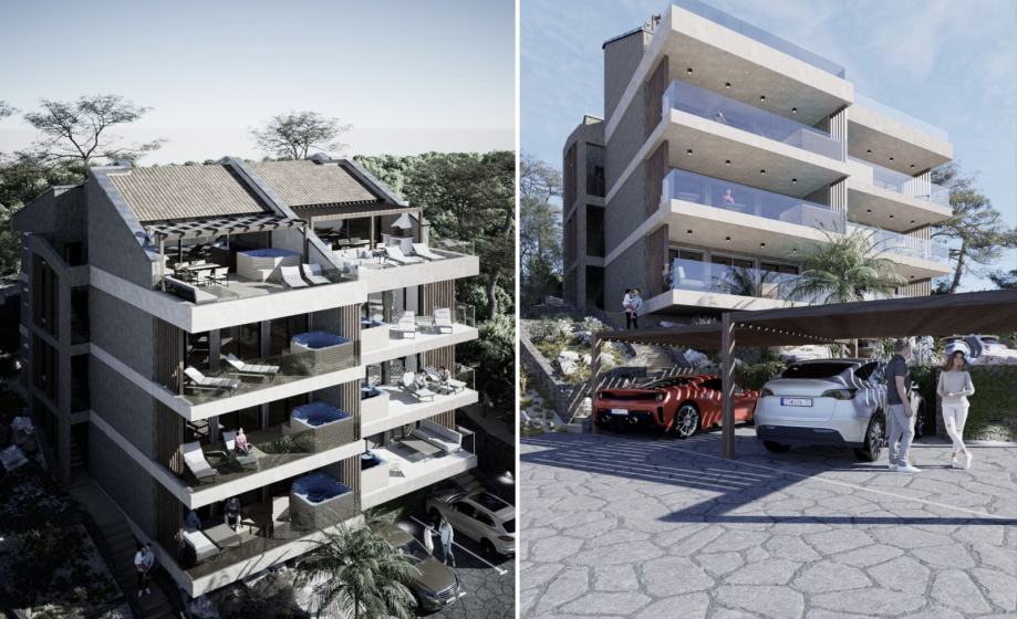Prodajemo visoko kvalitetno i luksuzno opremljeni stan od 116 m² s dodatnom okućnicom od 50m² na top lokaciji u Crikvenici. Ovaj stan se nalazi na 1 katu moderne luksuzne zgrade s otvorenim pogledom na more. Svi stanovi su kvalitetno i luksuzno opremljeni sa etažnim dizalicama topline s podnim grijanjem i hlađenjem te pripremom tople vode. Izuzetno niska potrošnja energije ljeti za hlađenje i zimi za grijanje. Stolarija je aluminijska uz troslojno iso staklo s ugrađenim električnim roletnama i komaricama. Sve sanitarije i kupaonske instalacije s vrhunskim proizvođačima ( Hansgrohe ) i sl. Parkirna mjesta s pripremom za punjaće za električna vozila. Stanovi su upravo u izgradnji i navedena cijena odnosi se na "roh bau" fazu izgradnje. Cijena kompletno uređenog stana biti će skuplja za 800 do 1000€ po m² zavisno o fazi izgradnje i željama kupaca.