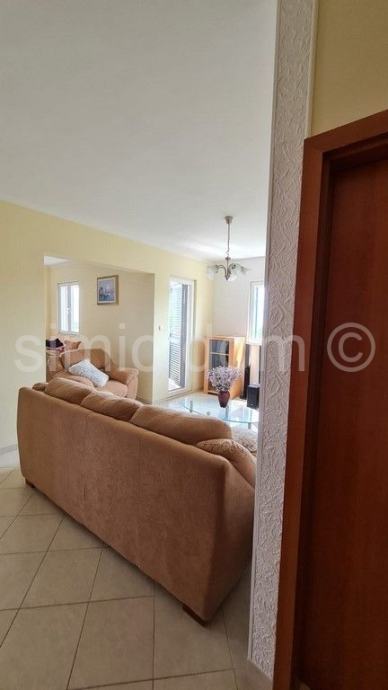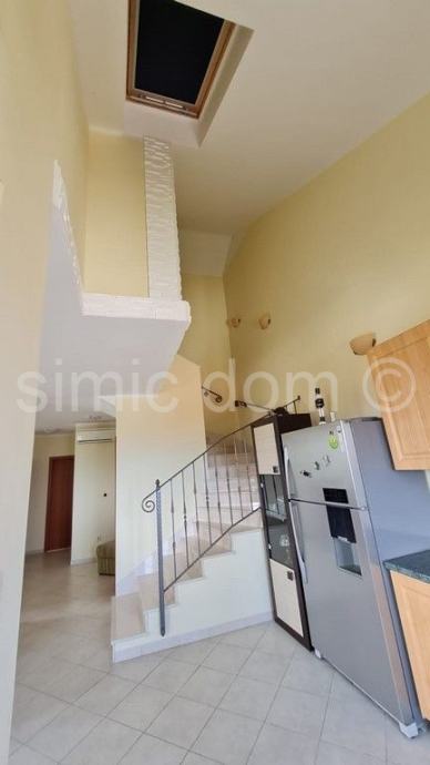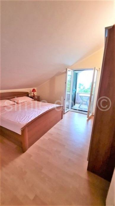 Posredujemo u prodaji luksuznog trosobnog apartmana na izvrsnoj lokaciji na otoku Braču. Apartman se proteže preko dvije etaže, u naravi drugi kat i potkrovlje ukupne površine 121 m2. Svaka etaža uživa predivan pogled na more koji se u budućnosti ne može zakloniti. Na etaži drugog kata položena je kuhinja s blagovaonicom, dnevni boravak, spavaća soba, ostava, toalet i kupaonica. Također iz dnevnog boravka i blagovaonice direktno se izlazi na prostranu lođu. Polukružno stepenište sa drugoga kata vodi na etažu potkrovlja gdje se nalazi još jedna kupaonica te dvije prostrane spavaće sobe sa izlazom na lođu. Cijeli stan je uređen i opremljen, klimatizirana svaka prostorija. Apartmanu pripada i garažno mjesto površine oko 20 m2. Vlasništvo uredno.