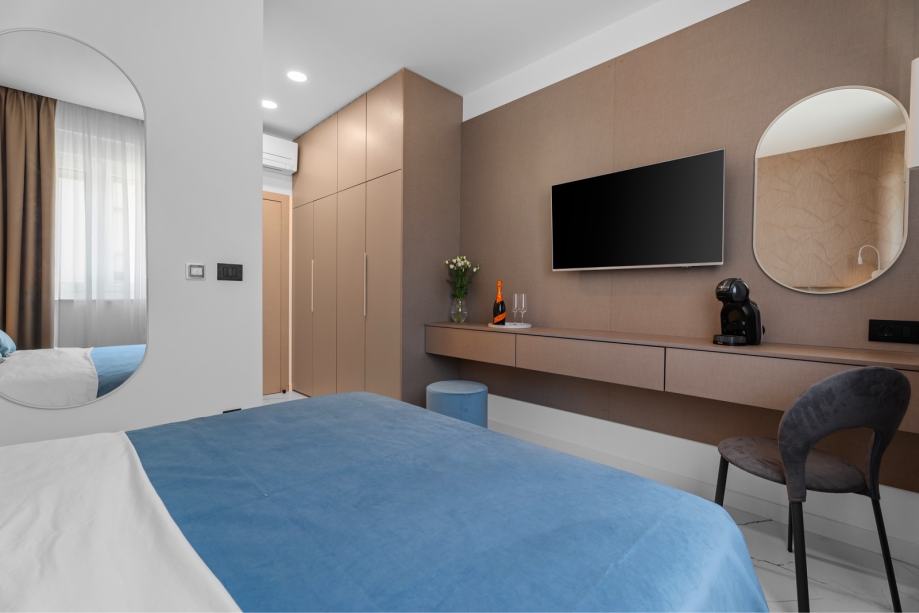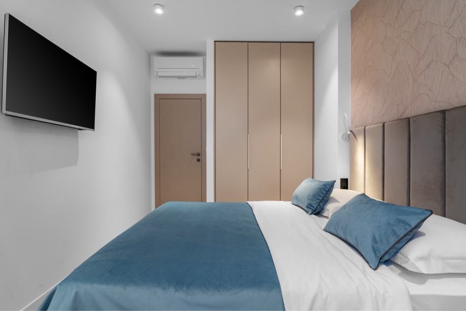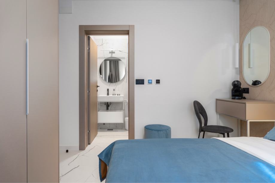 We are mediating in the long-term rental of a beautiful three-bedroom apartment located in one of the most elite parts of the city - in Meje. The apartment is located on the ground floor of a small building surrounded by greenery and beautiful landscaping. The apartment is 100m2 and consists of three comfortable bedrooms (each with its own bathroom, air conditioning and TV), hallway, kitchen with dining area and spacious living room with access to a beautiful terrace for outdoor enjoyment. The apartment also has underfloor heating. It is fully luxurious and modernly equipped with everything you need for a functional and comfortable life. Available for rent immediately, for the whole year and longer. The monthly rental price is €2500. More additional info on CONTACT: 0915616295 (ANDREA)