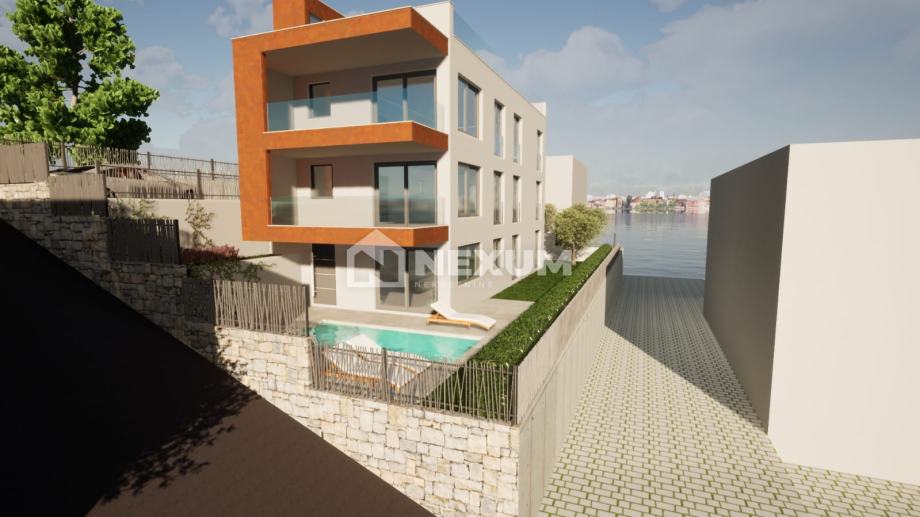 NA PRODAJU je luksuzan trosoban stan s vrtom i privatnim bazenom, 130 m od mora (Okrug Gornji)